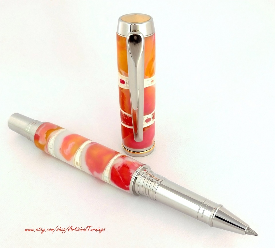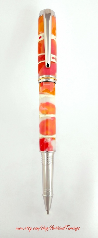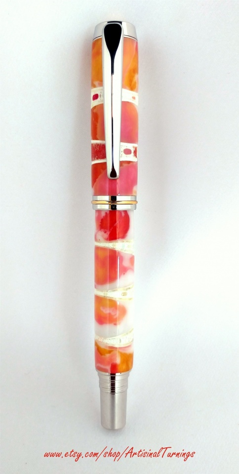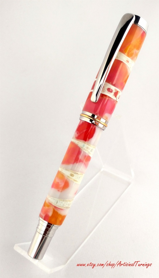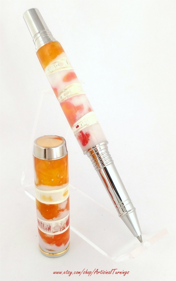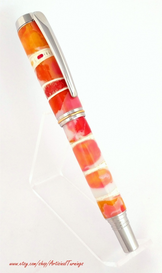 I cast this shark vertebra blank so I get to name it...hence the "Shark Dreamsicle". The casting was a bit of a SNAFU, so I'm very happy with the outcome. It's good to be lucky! Thanks for looking.