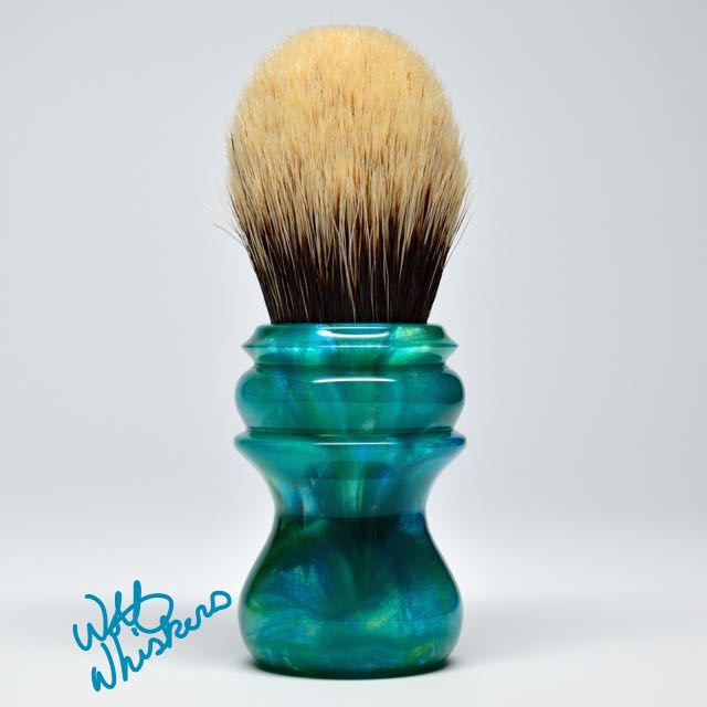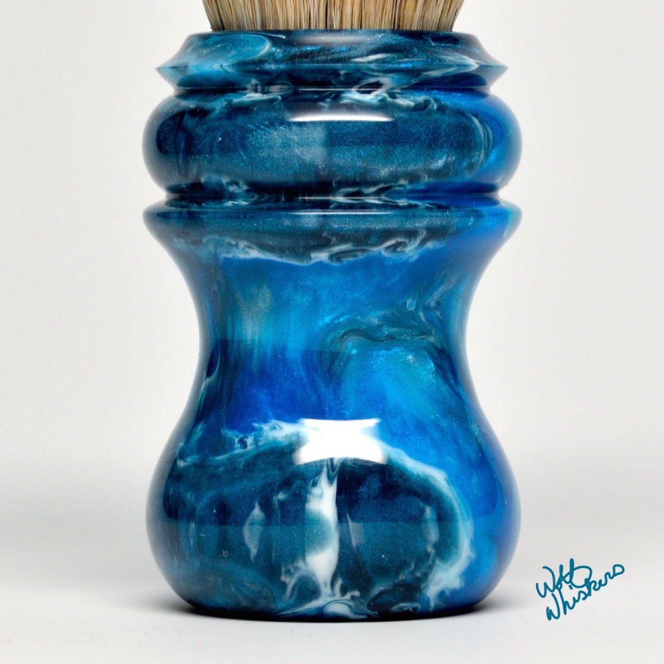 This is my passion. Casting resin for and then turning shaving brushes. These two handles were made from blanks artistically created by Bob Dupras and crew out at slabsblanksandboards.com . He likely sells more pen blanks which are some of the most creative and prettiest ones I've seen, but he will make larger bottle stopper blanks. I have had more comments on these two handles than many of my own. the blue one is a seven PR combo called the 7 Seas and the other is called Alien's Eye color theme. He is great to work with and has a large selection.