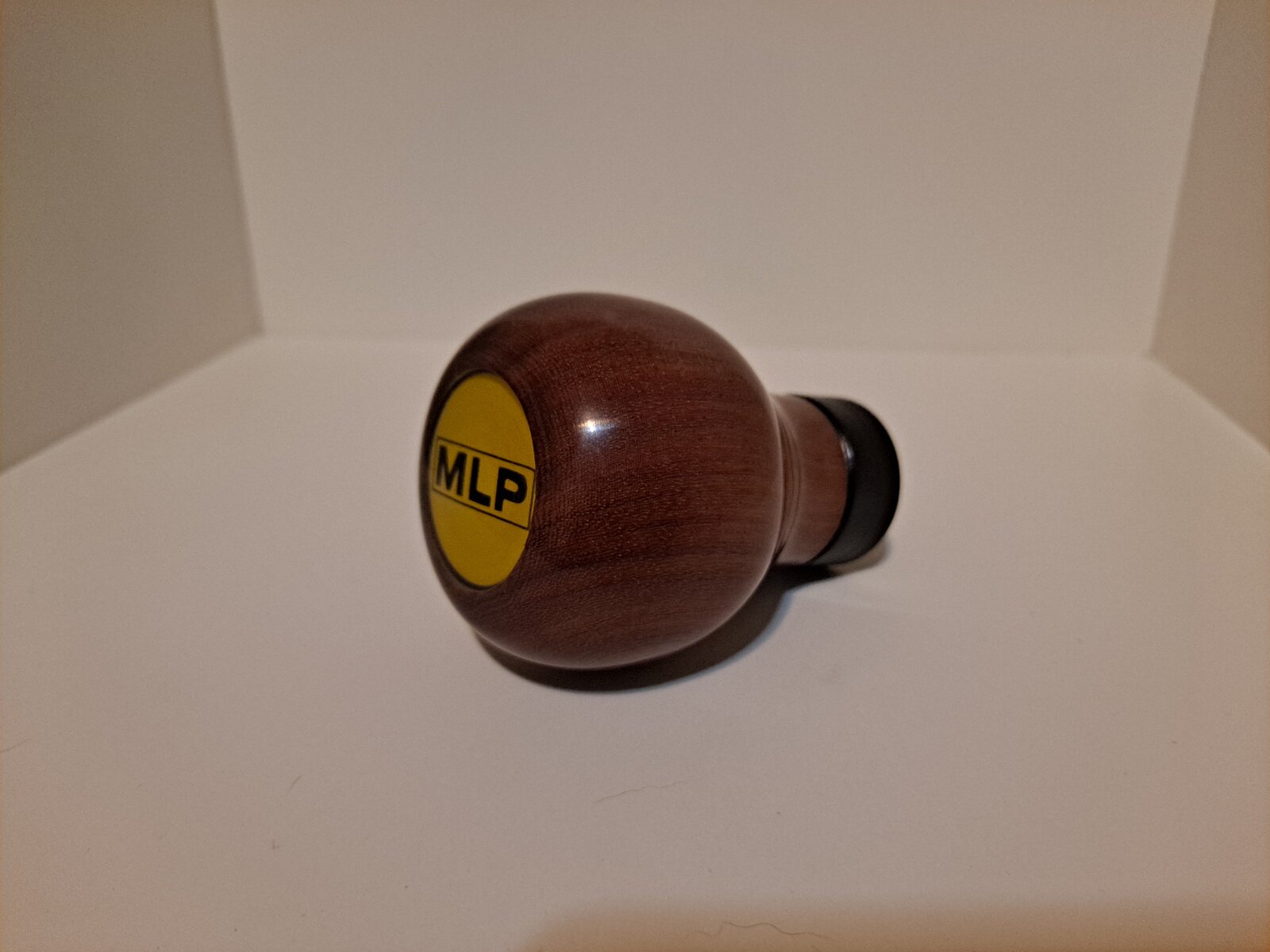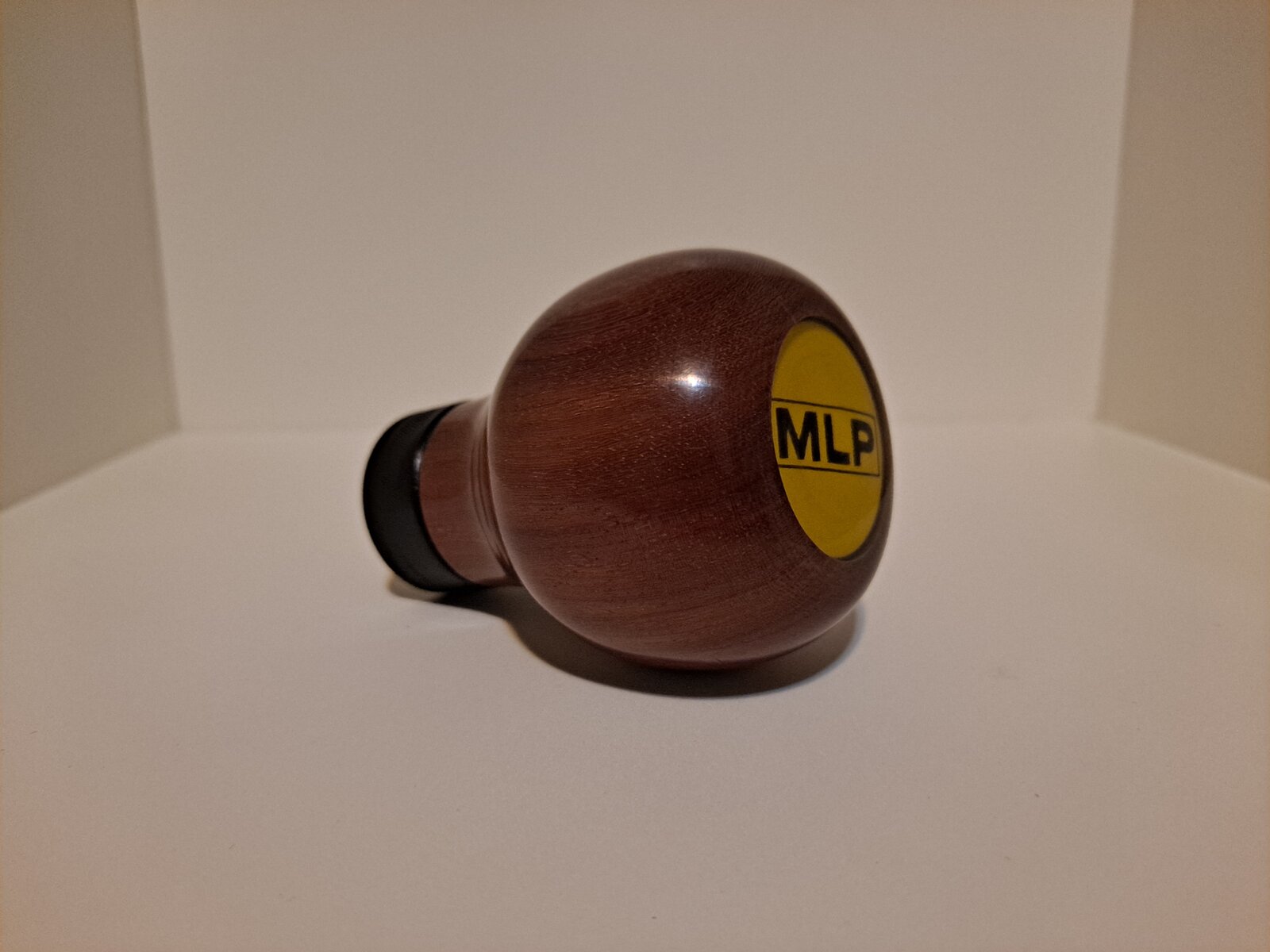 Katalox shift knob with cast logo for my friend's youtube channel. I machined the aluminum base and set nut that will hold the boot up and allow him to clock the logo orientation correctly. The knob is 3" tall and 2.25" at the widest. Base is 1.25". This is for a 2008 Subaru Forester XT.