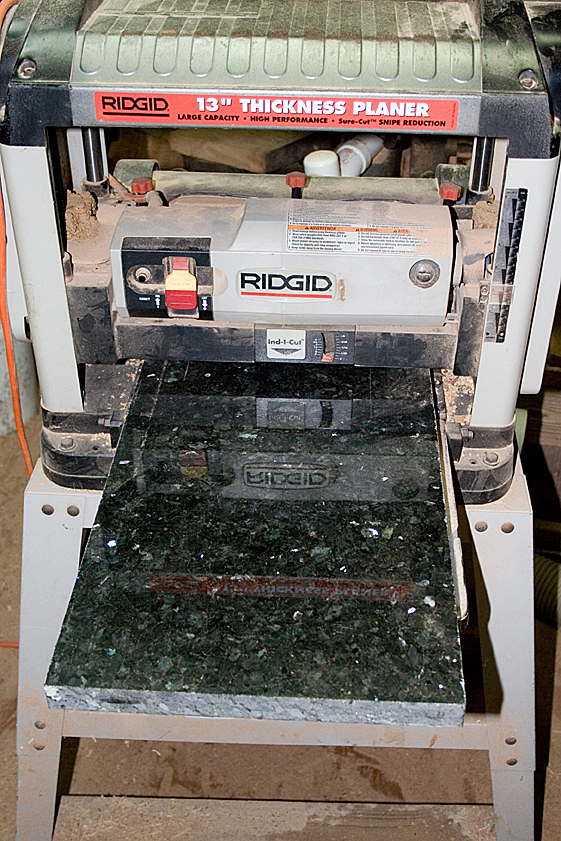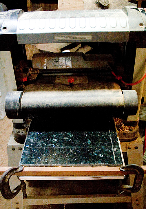 Even further back I damaged the bed of my planer. I picked up a used piece of granite and cut to fit. Works well. Used a diamond blade on a circular saw and cut OUTSIDE. Lots and lots of dust. The c clamps on the outfeed my not be needed due to the weight of the granite.