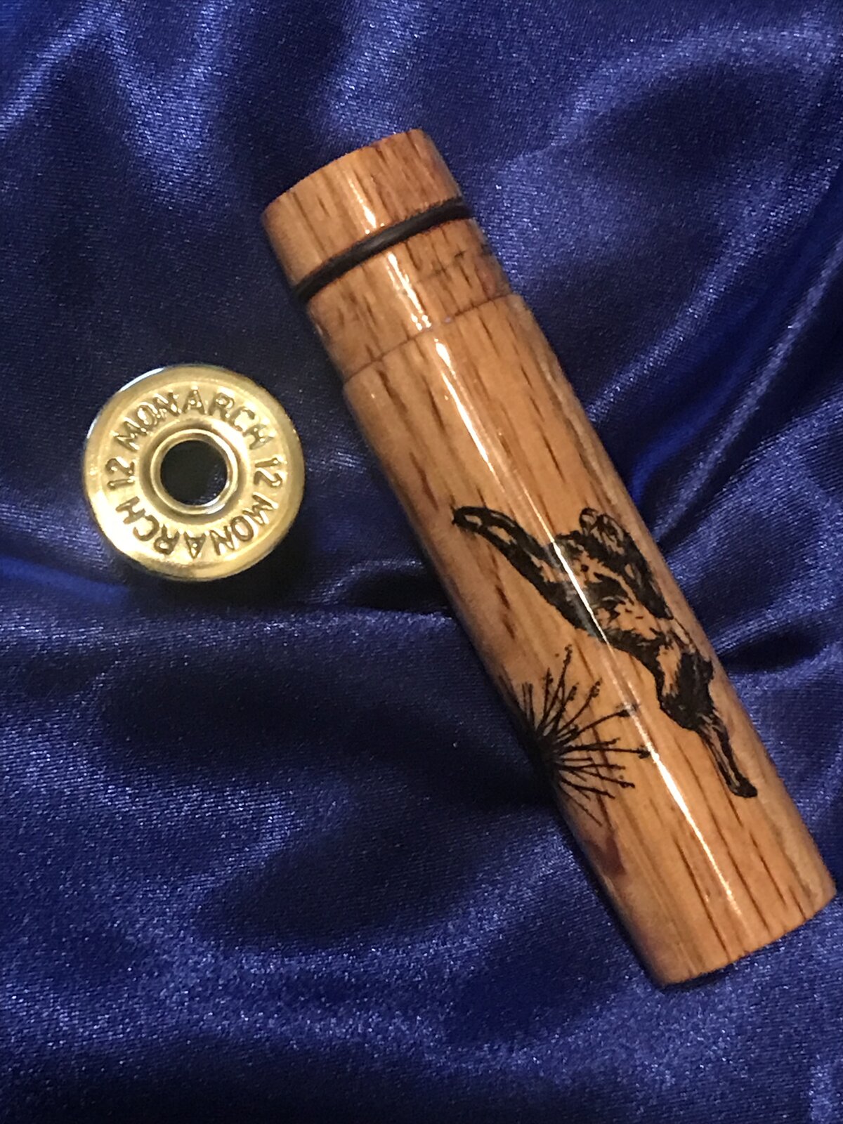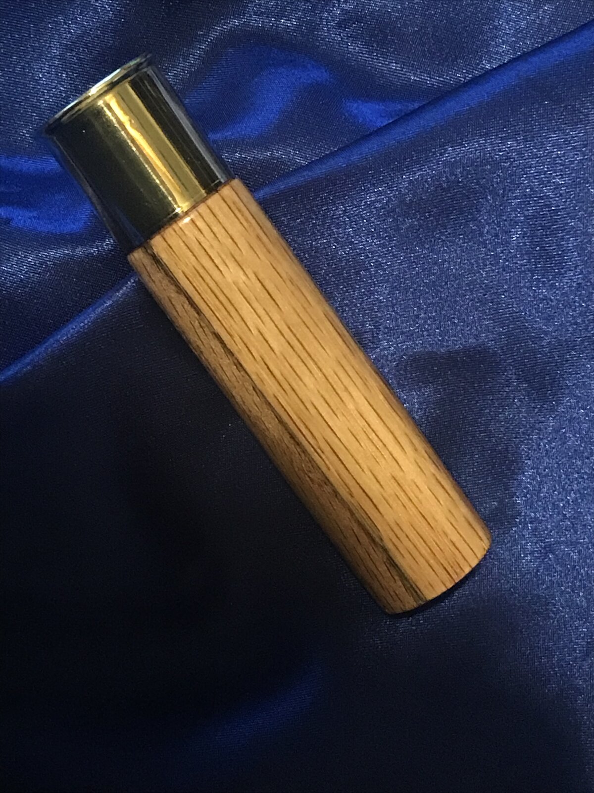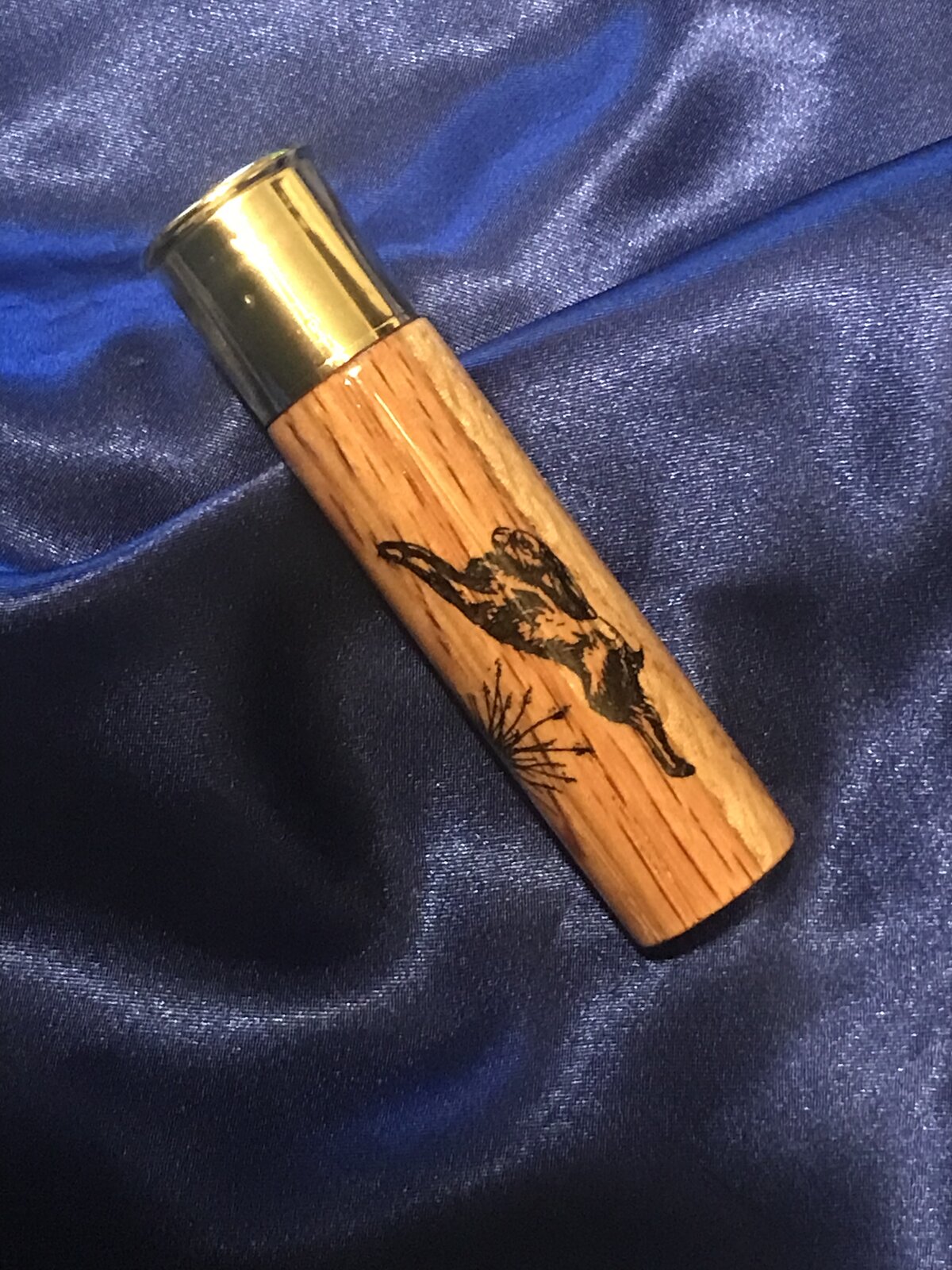 I wanted to play with my new laser so I thought I'd give this a try. It's a very easy call to make so I dextrose start with this. I had a 11/2" Oak Dowel laying around so no added expense. I drilled a 1/2" hole then turned the diameter to fit the brass cap. I like using it rubber O rings so you can swap out the reeds and not damage them. Since I'm not used to the laser I engraved it too deep so I filled it with CA. Once I had it level I finished it with CA just like I would a pen. Questions and Comments Welcome.