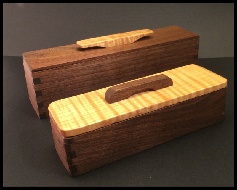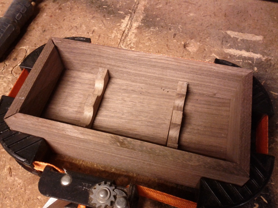 Those are awesome. Here's the first box I made. I used scrape walnut and some kind of burl drop off, can't think of what it was. I need more practice, this was more of a "lemme see what I can do on the fly" type thing. I think I only measured one thing on the whole box, lol. Thinking about staling my dad's dovetail jig set for a while, he's had it for about 5 years, never taken it out of the box. It was for my sister for a wedding gift.