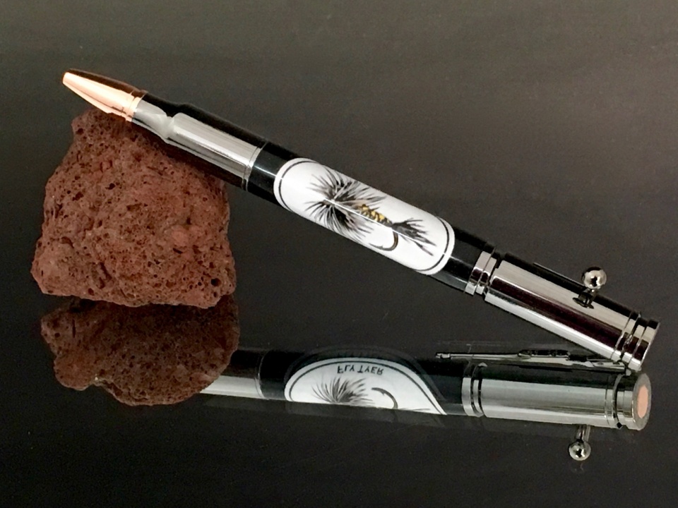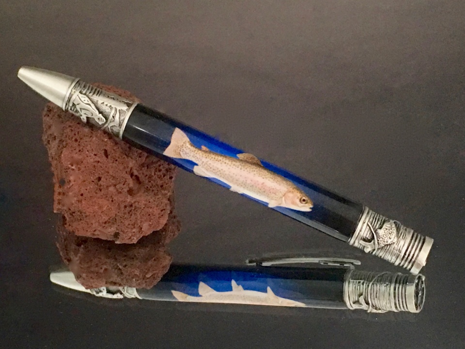 Pen show season is just starting for me, with the first one tomorrow. I was impressed with the fishing blanks made by Mike (MrKugelschreiber) and had him make some up for me. The first is a fly on a gunmetal bolt action. The second is the same blank on a PSI fly fishing pen and the last one is a rainbow trout photo I had that he made into a blank and it is also on a PSI fly fishing pen.