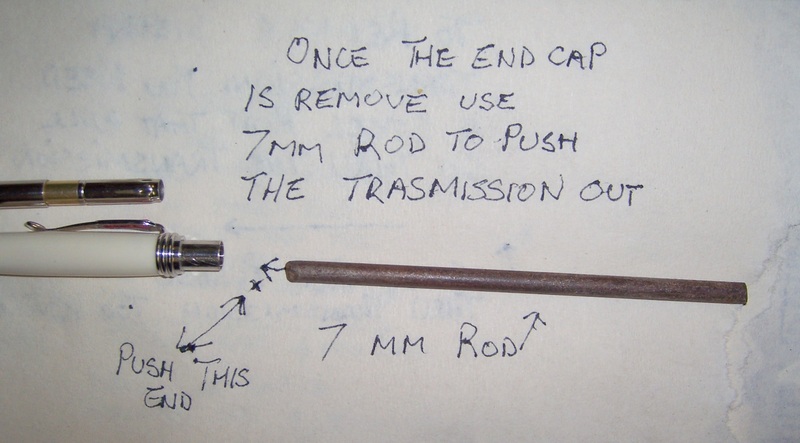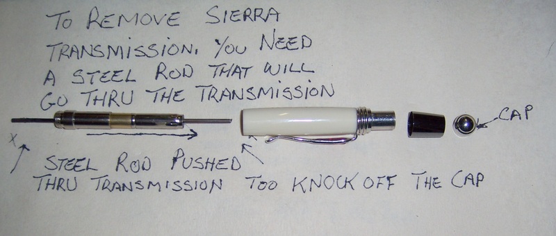 I'm hoping somebody has a suggestion for me. A few weeks ago I had an associate bring a Sierra pen back to me - her son had taken it apart by unscrewing it, leaving the transmission still stuck inside. But when he was putting it back together, the refill wasn't seated properly and he managed to push the transmission farther into the finial, thus making it impossible to screw it back together. I ended up bending the transmission trying to get it out. I showed them how to pull the whole thing out the next time they want to change the ink.