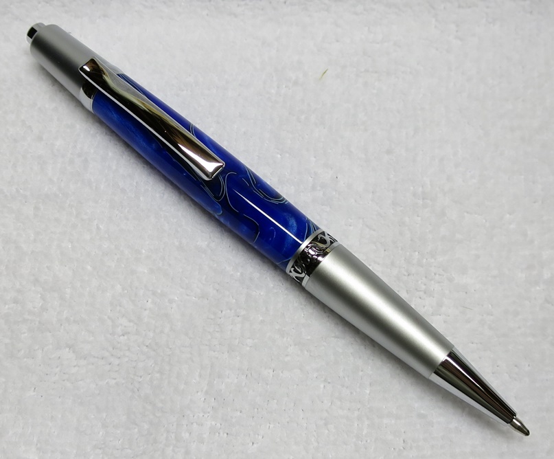 This is an Elegant Sierra click two-tone pen. The blank is called Under the Sea Mesh. I really like this one, both the pen and blank.