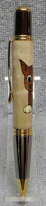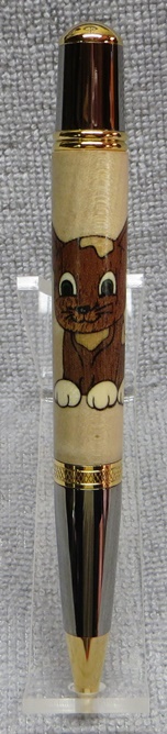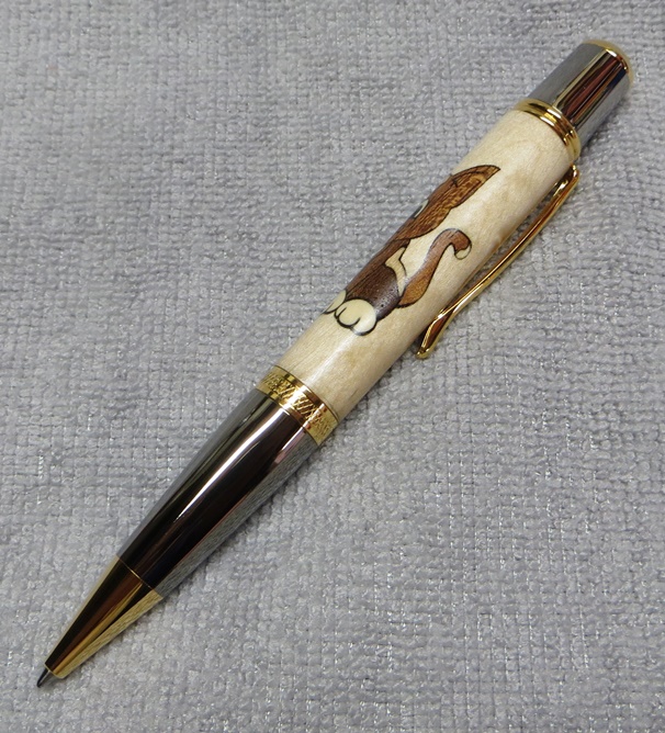 This is my first Sierra Vista pen, and my first laser inlay. The pen finish is black titanium and titanium gold. It's for my ex-wife's cousin, who is graduating from university. Her cousin has always been a cat person, so we both decided the kitten inlay would be perfect. The inlay was definitely challenging, but I'm very happy with how it turned out. My ex chose the perfect kit. I think Lori will be pleased with it.