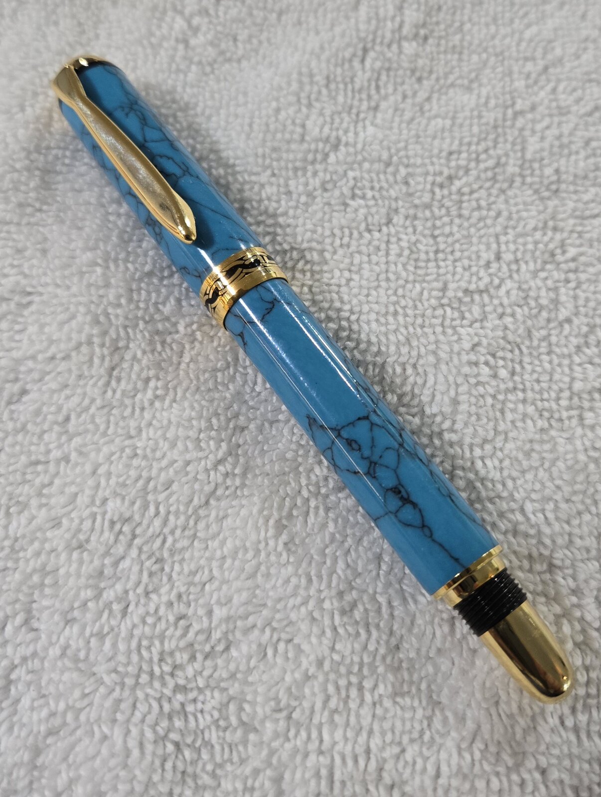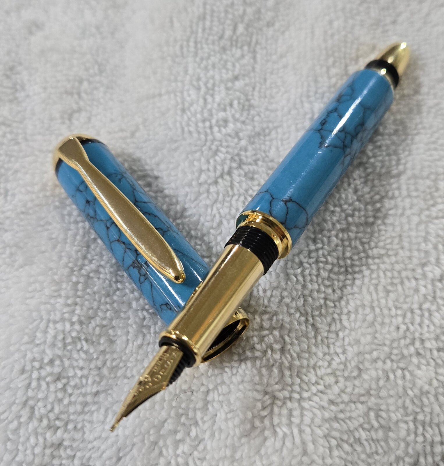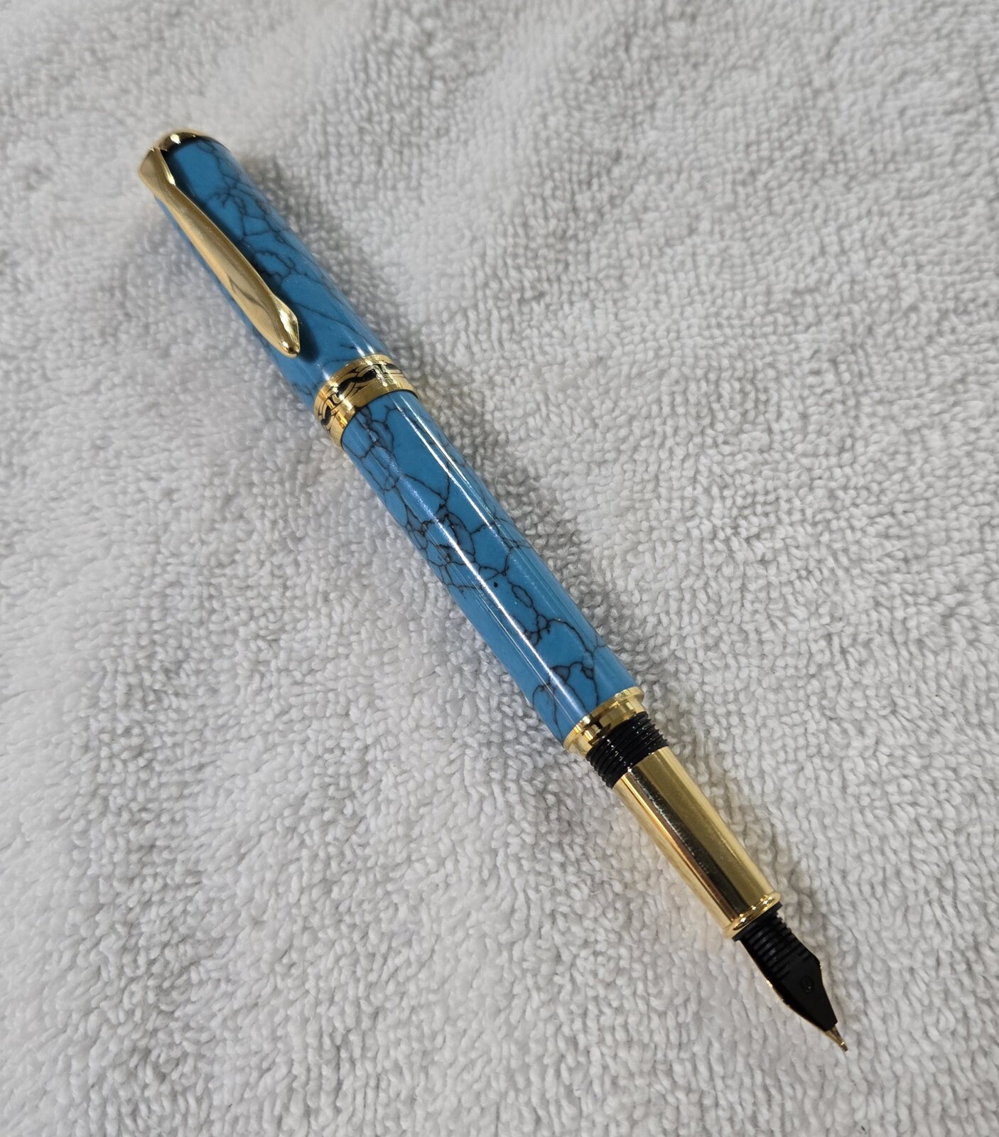 I was organizing my pen kits and found an old fountain pen kit that I forgot about. I also found an old turquoise sim-stone blank that I forgot about. So, I turned this one. I may have to keep this one for myself.