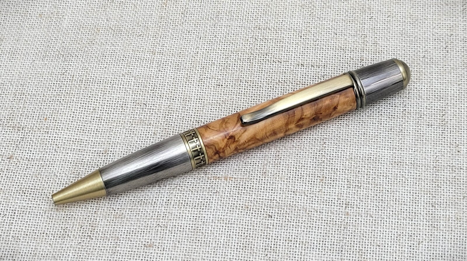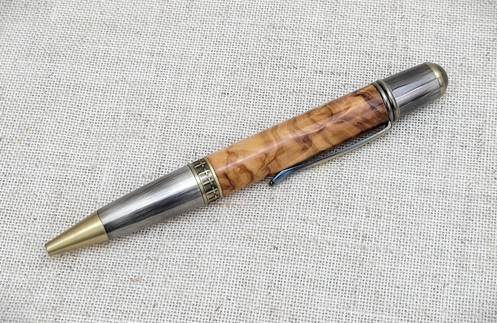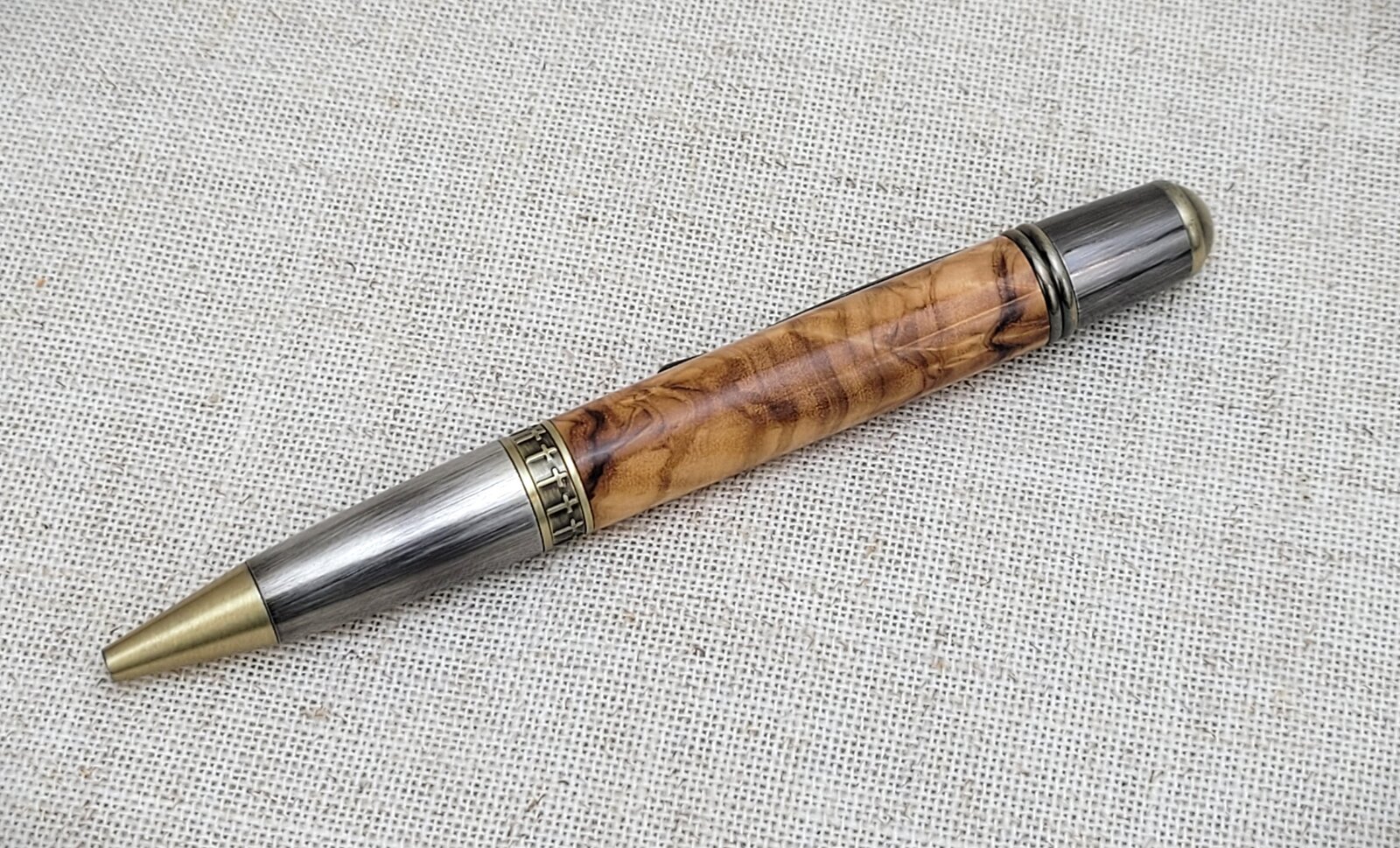 While it's just a sierra style, this is the first time I've tried the Diplomat kit. It's a nice solid kit. I'm loving this olive wood, though. This was a Home Goods cutting board. Finish is 2 coats of medium and 2 coats of thin GluBoost, wet sanded to a low gloss finish.