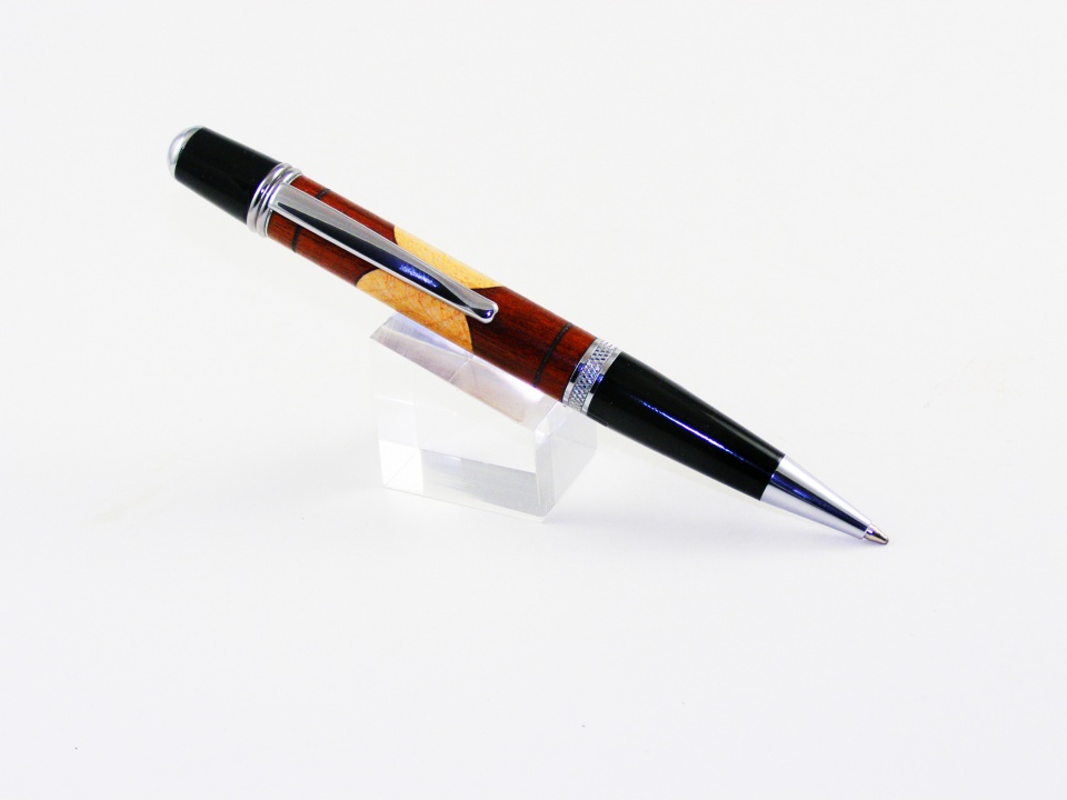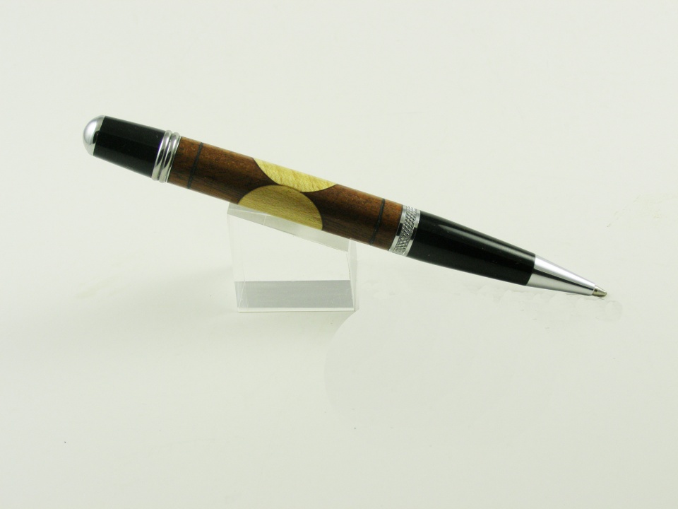 This segmenting is done with some scraps of wood from the scrape box. I've wanted to try some thing like this for awhile. It ain't perfect, but now I know how to make it work. It is kinda like the Beal Pen Wizard work. I'll never be able to sell it for the amount of time used in making it. The payoff comes from the satisfaction in making it, the enjoyment of being out in the shop piddling and making dust and shavings. Let me know what you think.