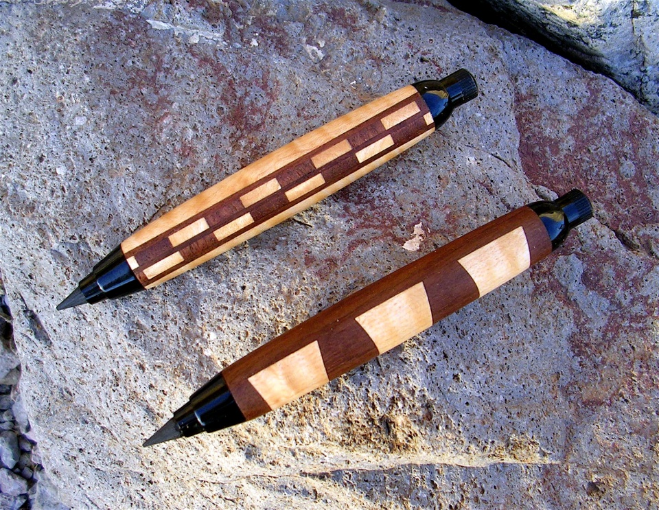 The sketch pencils are Christmas gifts for a co-worker. He is our resident scenic designer and like the feel of wood so I just used a couple of coats of walnut oil on these. No clips since he carries them in his pants pocket.