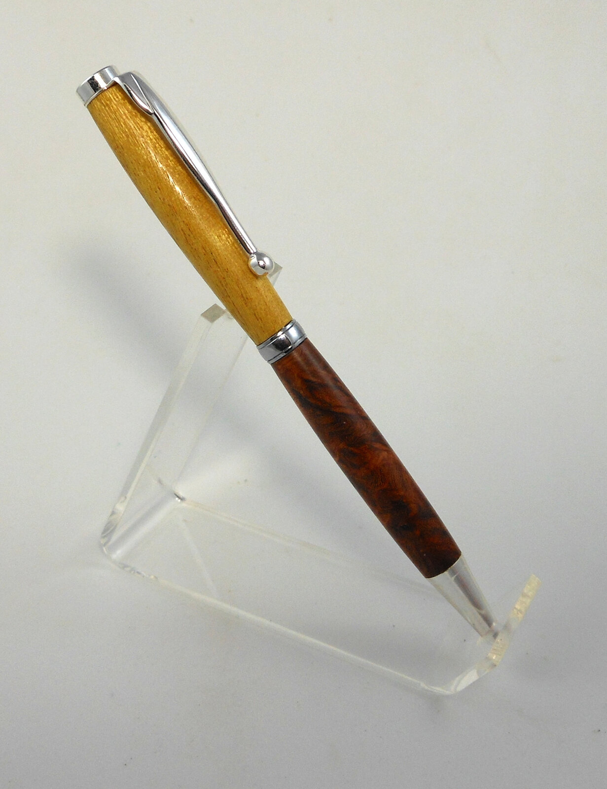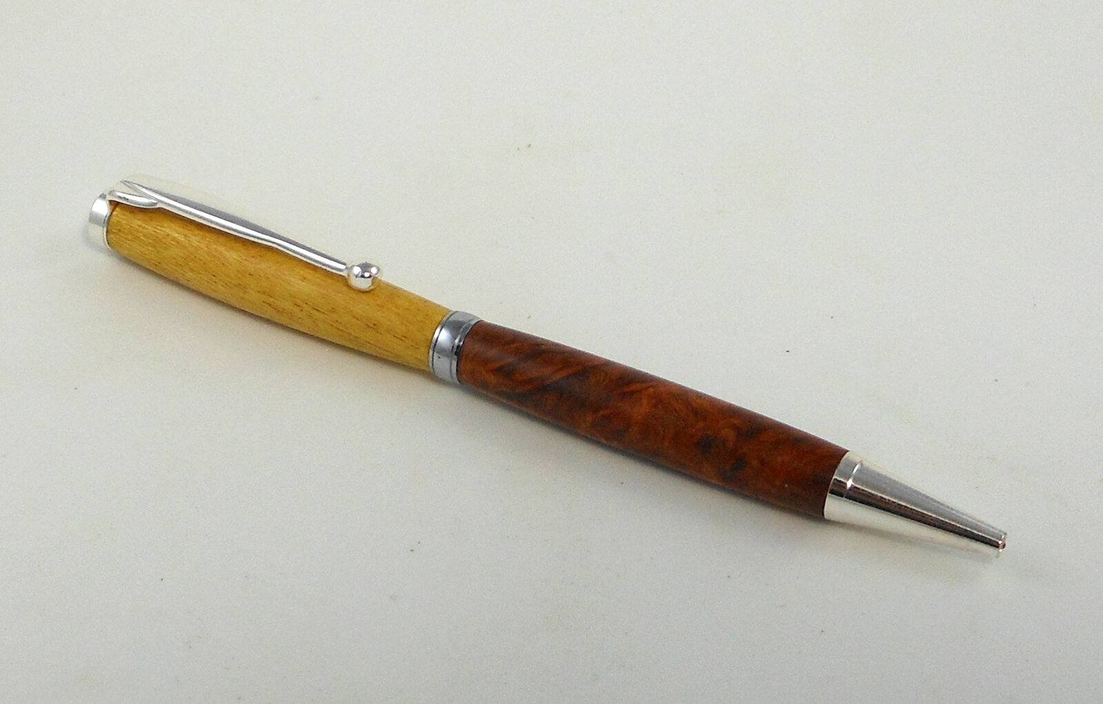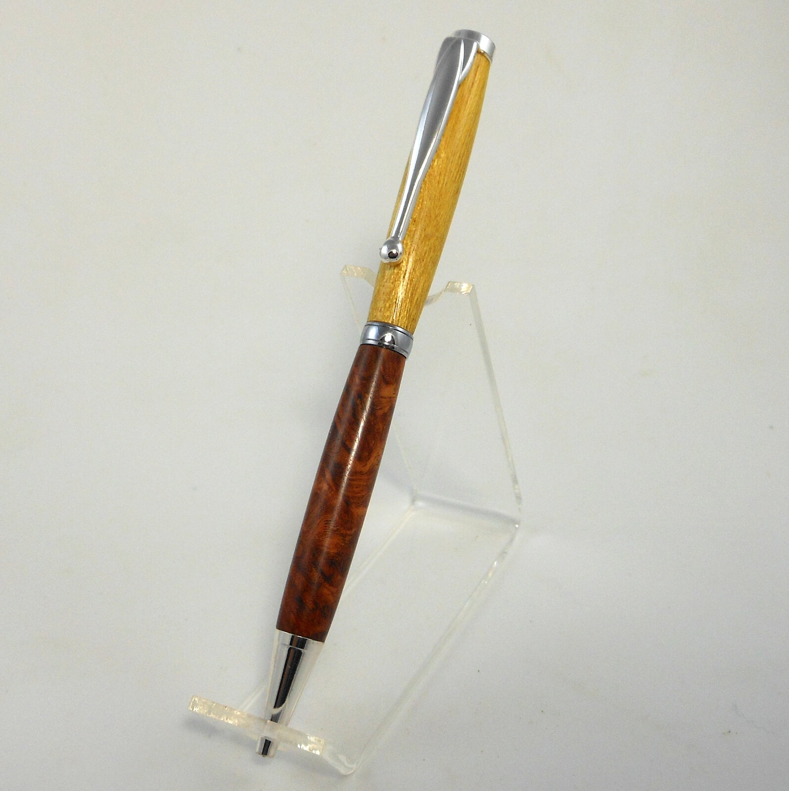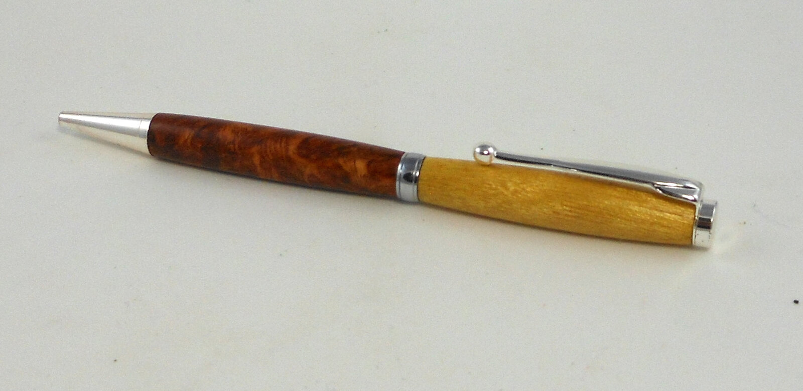 Made a little slimline today out of off cuts, yellowheart and amboyna burl. I thought it would make a nice combination. Just started to make pens again after a few years of not doing them. I guess i still like to do them.