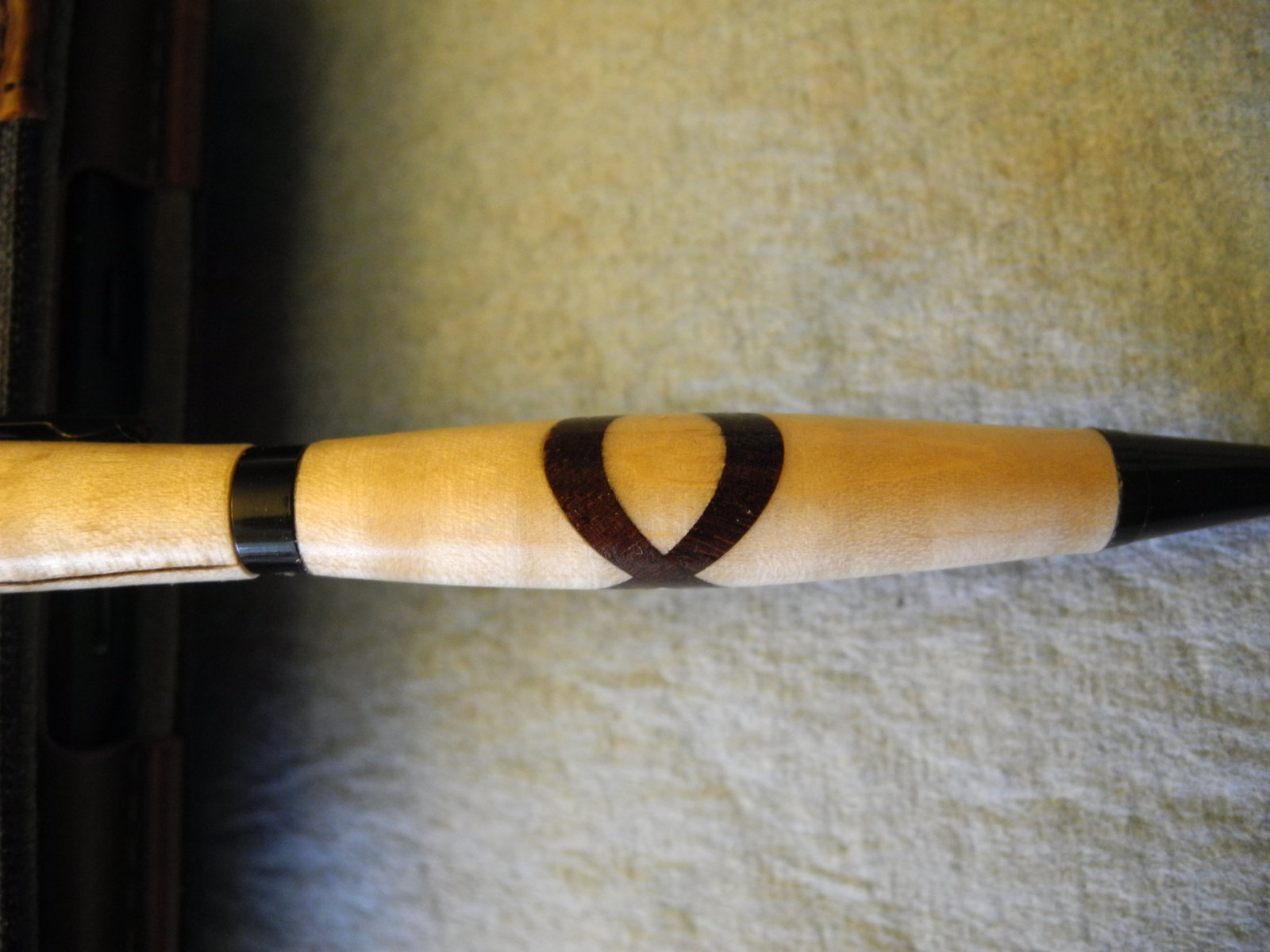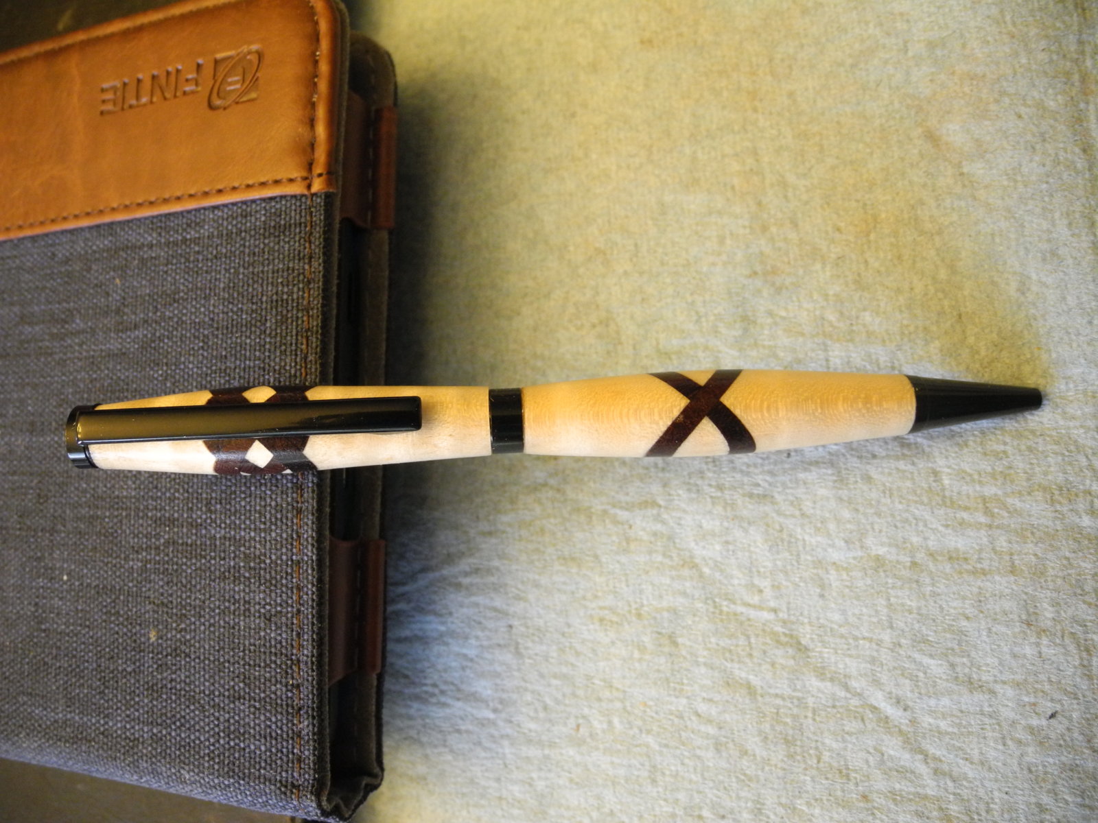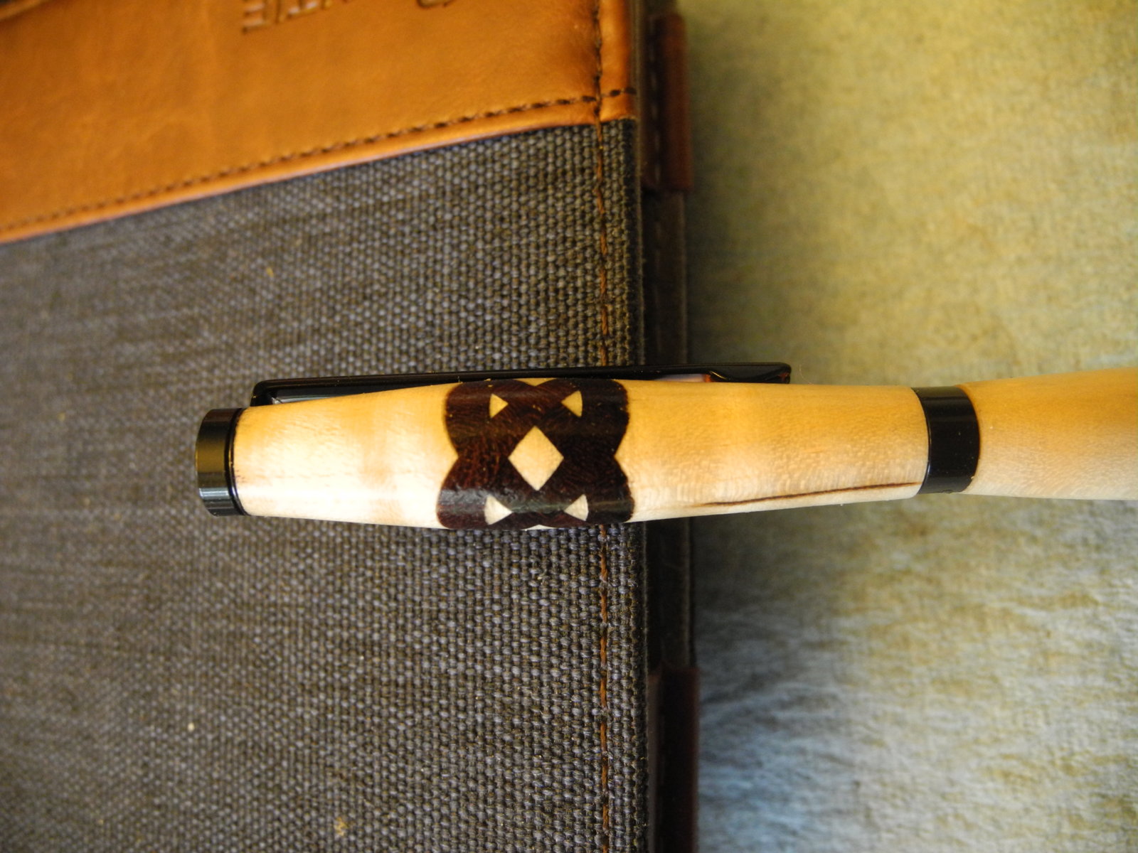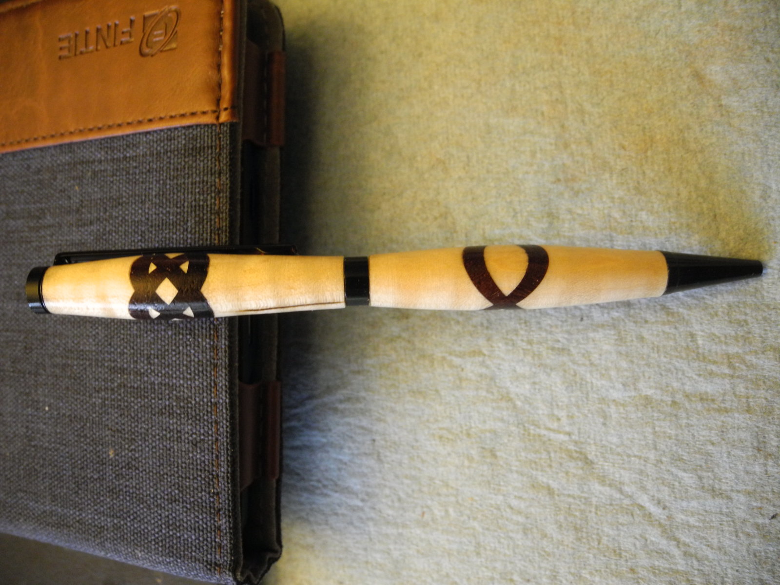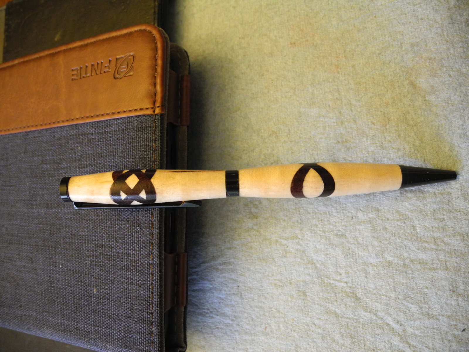 I spent the day making this pen, it is a slimline that I completed a Celtic Knot using my new trimming sled I built last week. I cut the inserts out of Texas Ebony and used a piece of Curly maple for the body. The finish of course is a CA finish. Let me know what you think, I was a little excited on how it came out.