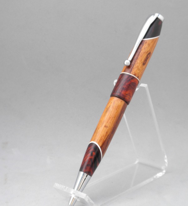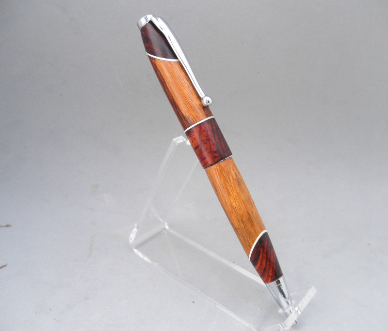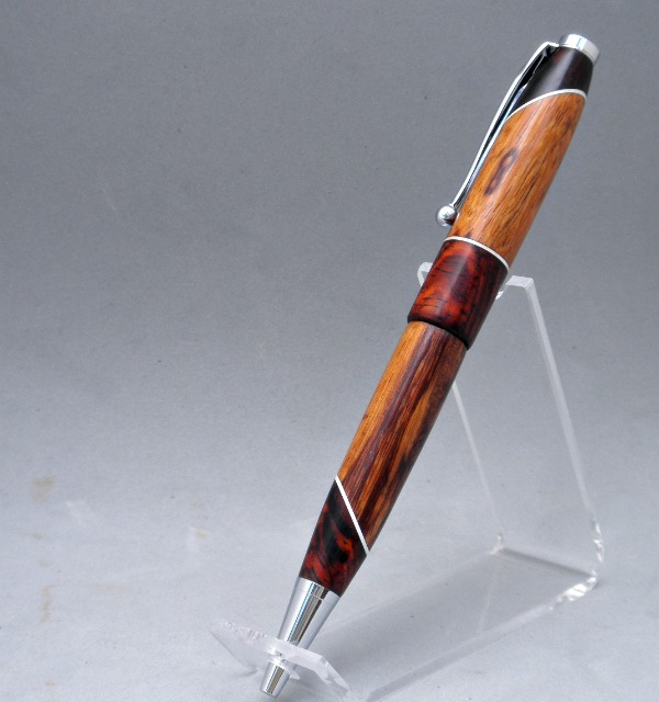 I had some free time in the shop over the weekend and thought I would try my hand at some segmenting. I had been wanting to give it a shot for a while. I ended up taking some marblewood and cocobolo scraps and separating it with some credit card material. I applied a CA finish then knocked it back a little bit to give it more of a satin finish.