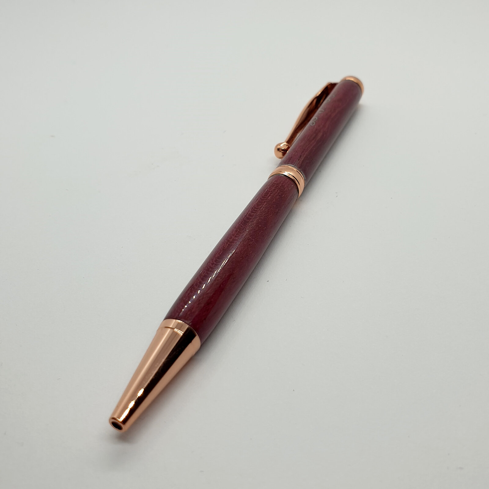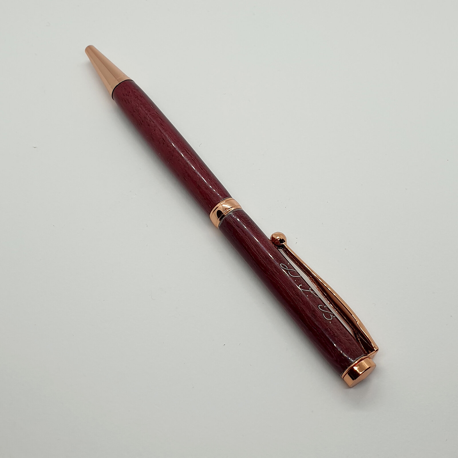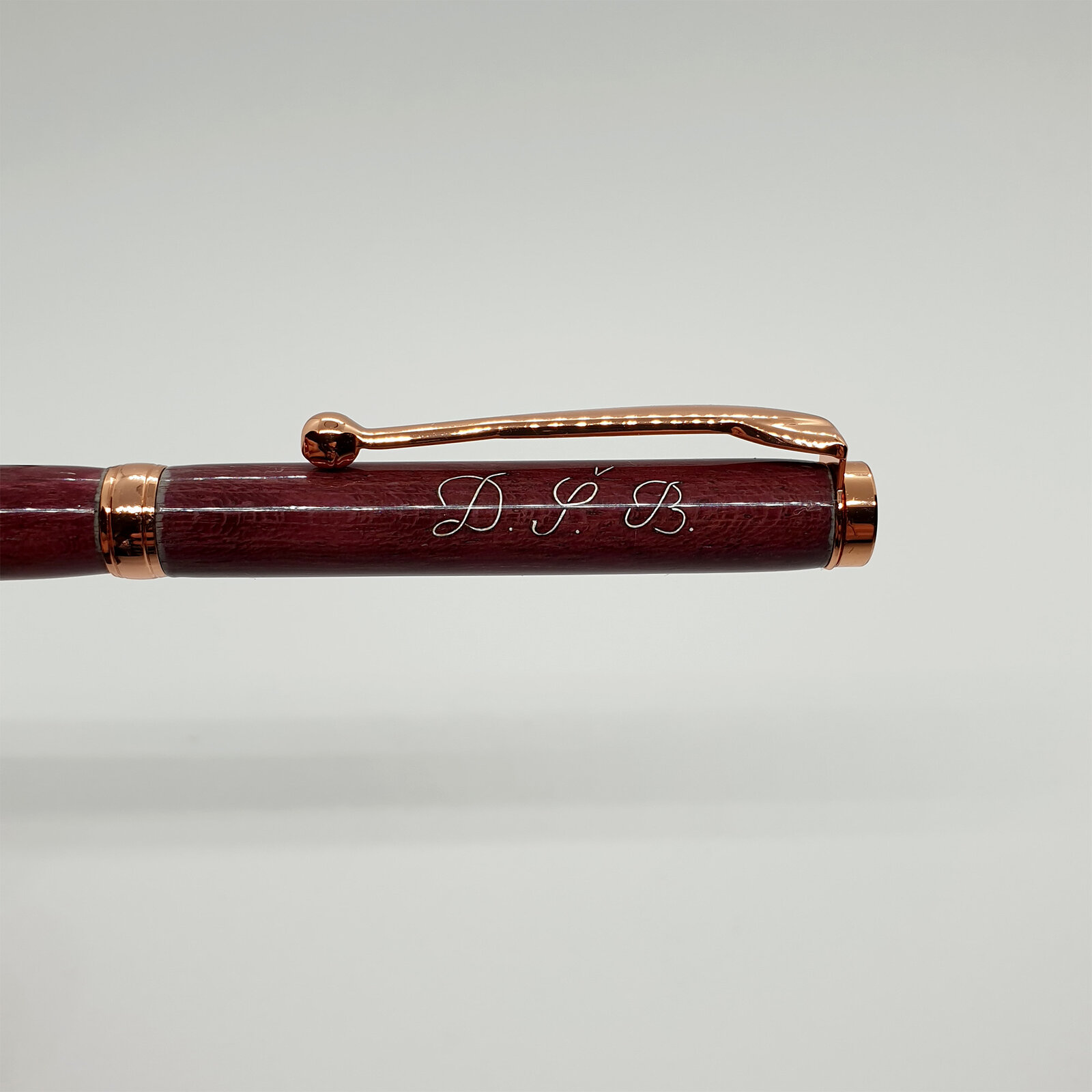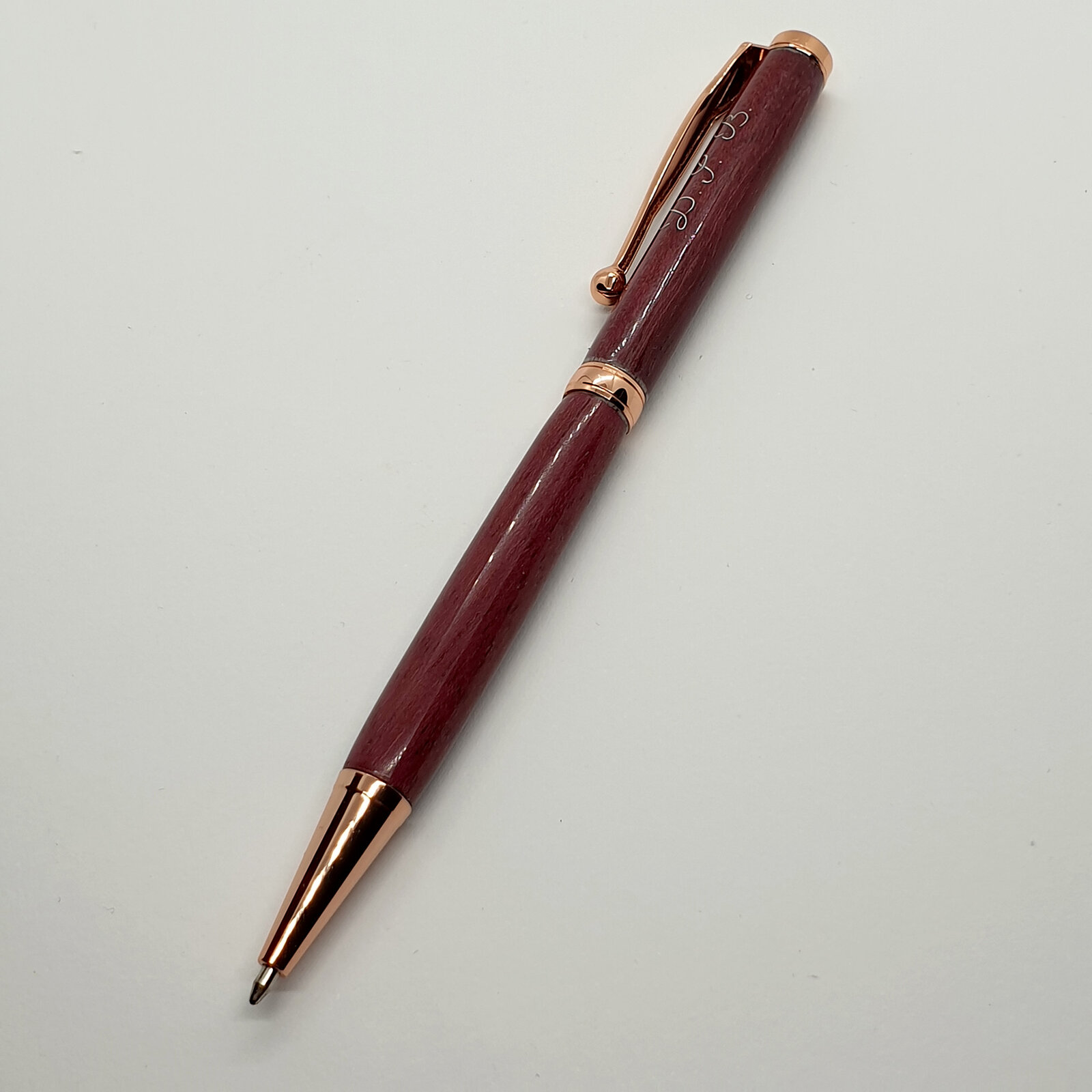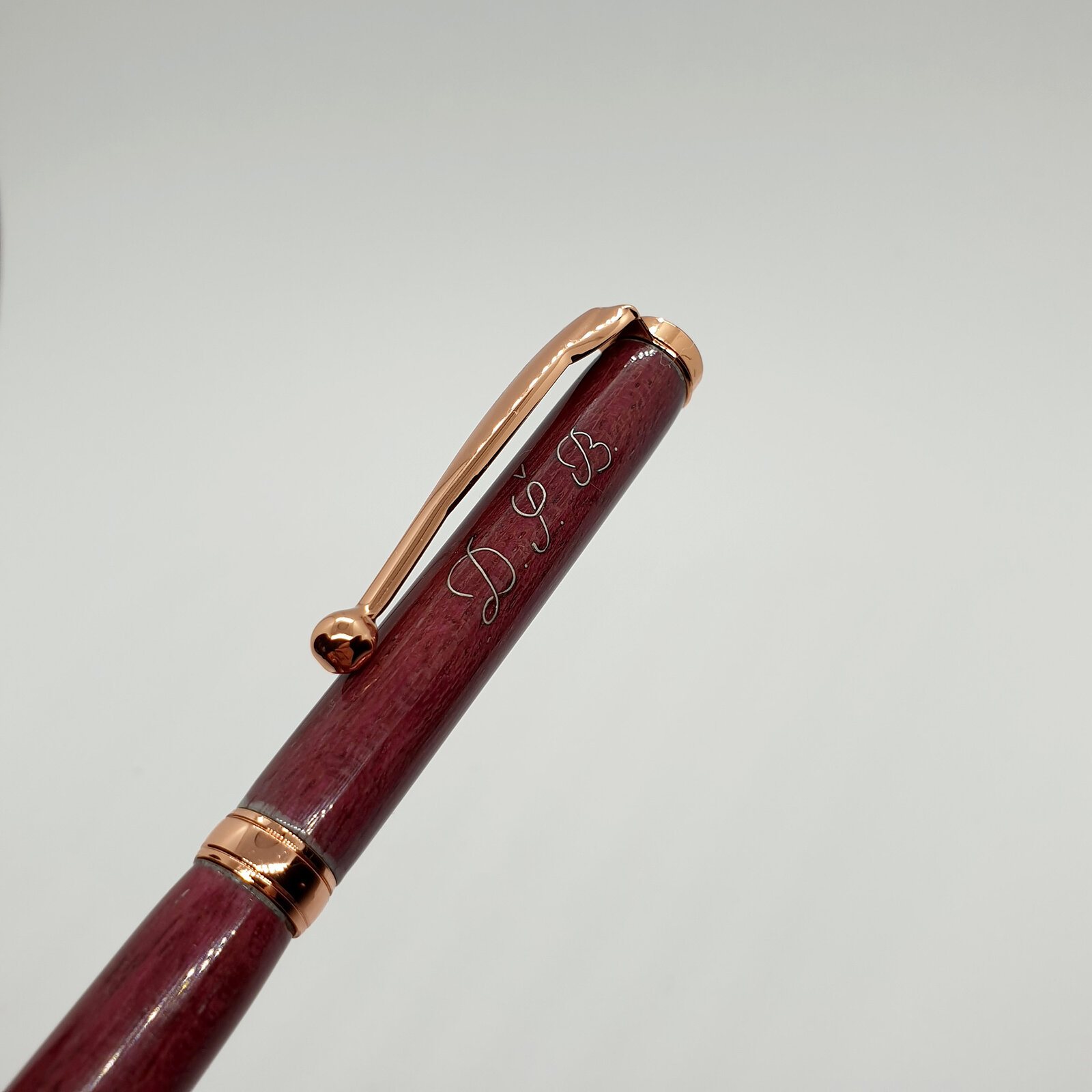 here is the third pen I made. It`s slimline with Purpleheart and silver wire inlaid initials.