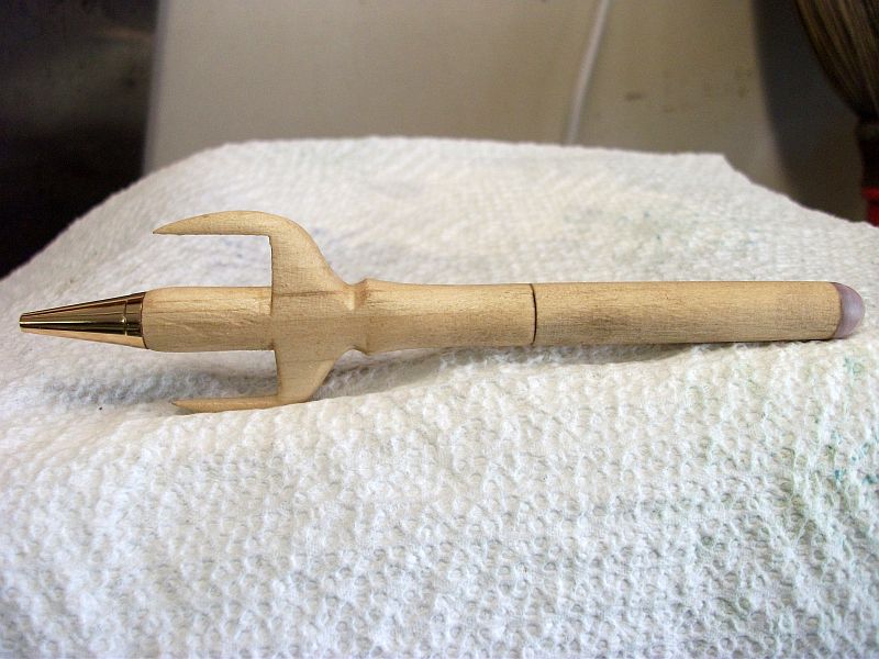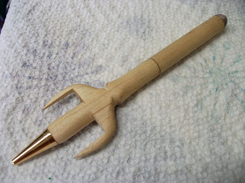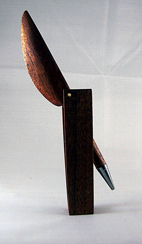 This is made of mahogany and is to serve a dual purpose of being a letter opener/pen made to look something like a pocket knife and stands the desk as shown in the first picture.