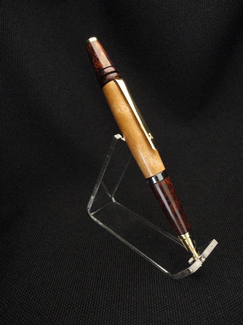 A one-piece Slim Line made using the inside-out turning process. The center tube is Maple. The body is Jatoba. The tip and cap are Rosewood.