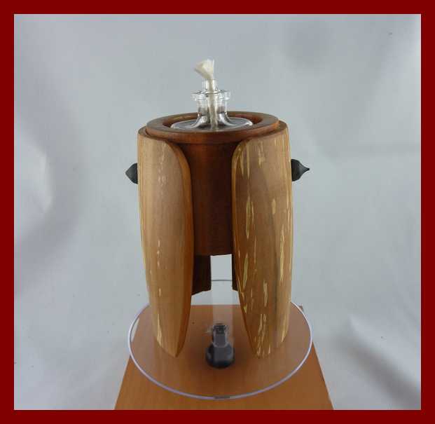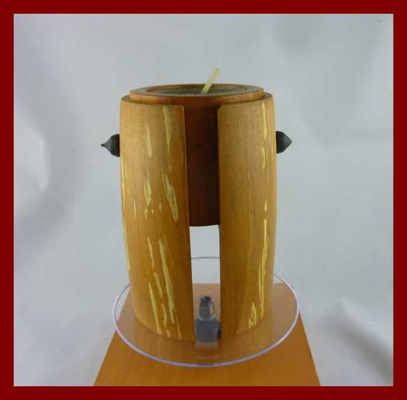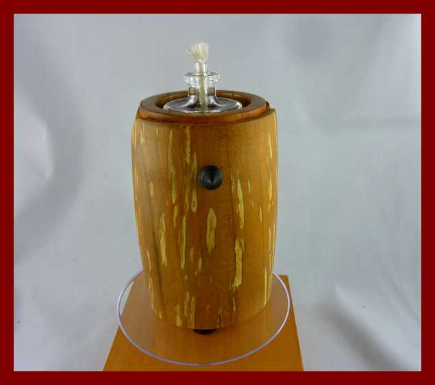 Spalted Whitebeam mantle surrounding a body of plumtree contain either a tea plate or an oil lamp. 62 mm x 100 mm