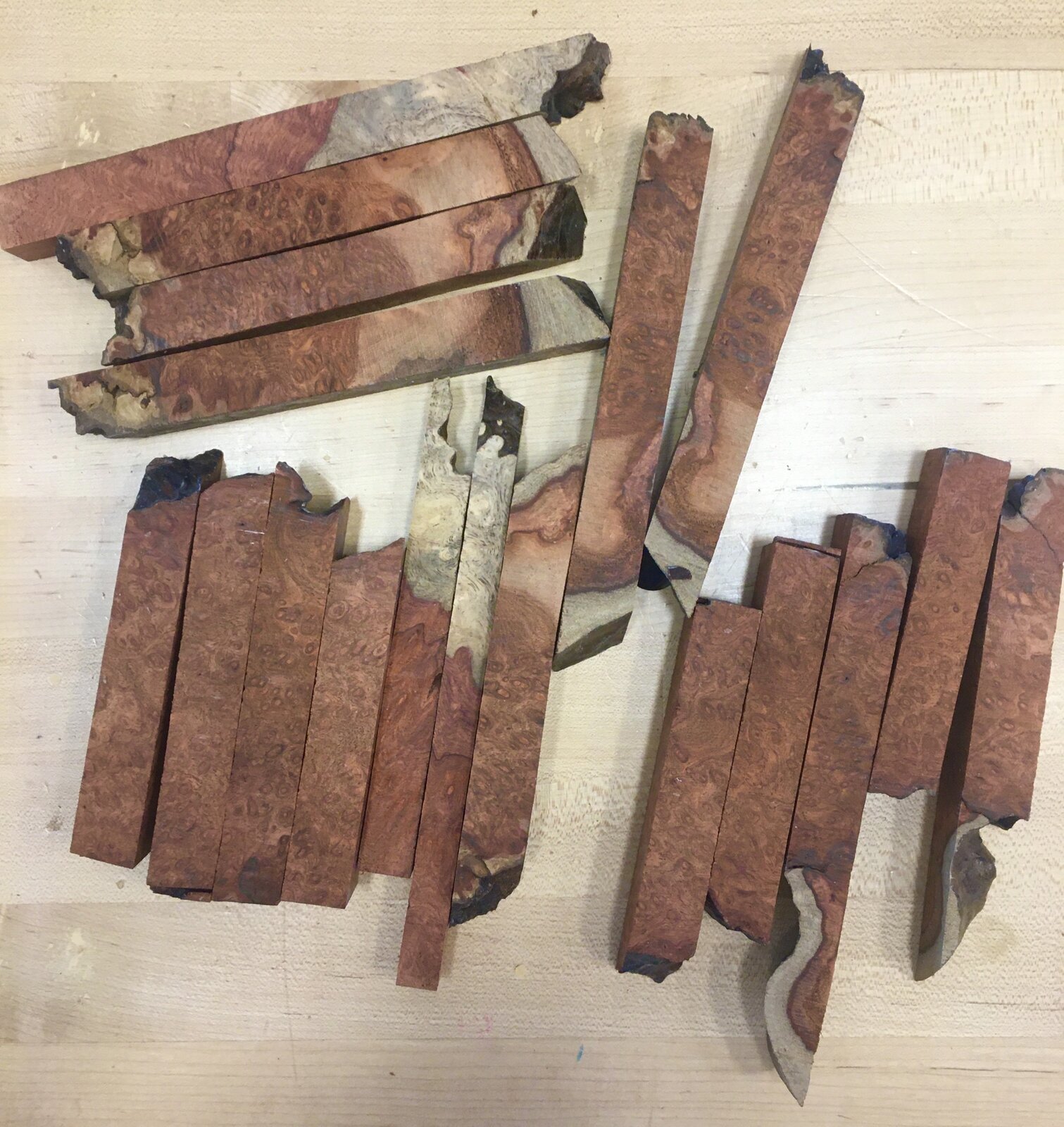 PS - I ended up with a bag of the stuff. Usually a blank of amboyna burl with sapwood runs close to $20 each so I buy it rarely.