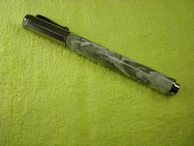 I was trying for something kinda see through with little swirls of black to grey showing through the white. Didn't quite make it to black but the result is still pretty cool. The backround is a little harsh but the pen color is pretty much spot on.
