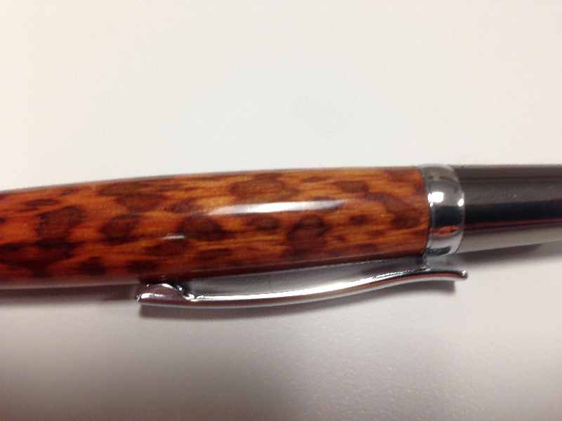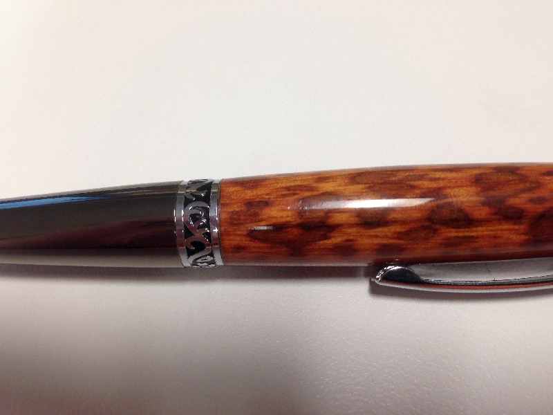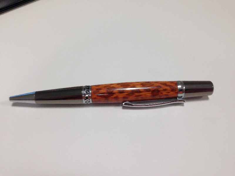 Here is a Elegant Sierra in Gunmetal and Chrome with a Snake Wood blank. The finish is CA. I didn't notice until I was editing the picture, (it was very late last night) that there is a small blemish that I am going to have to buff out.