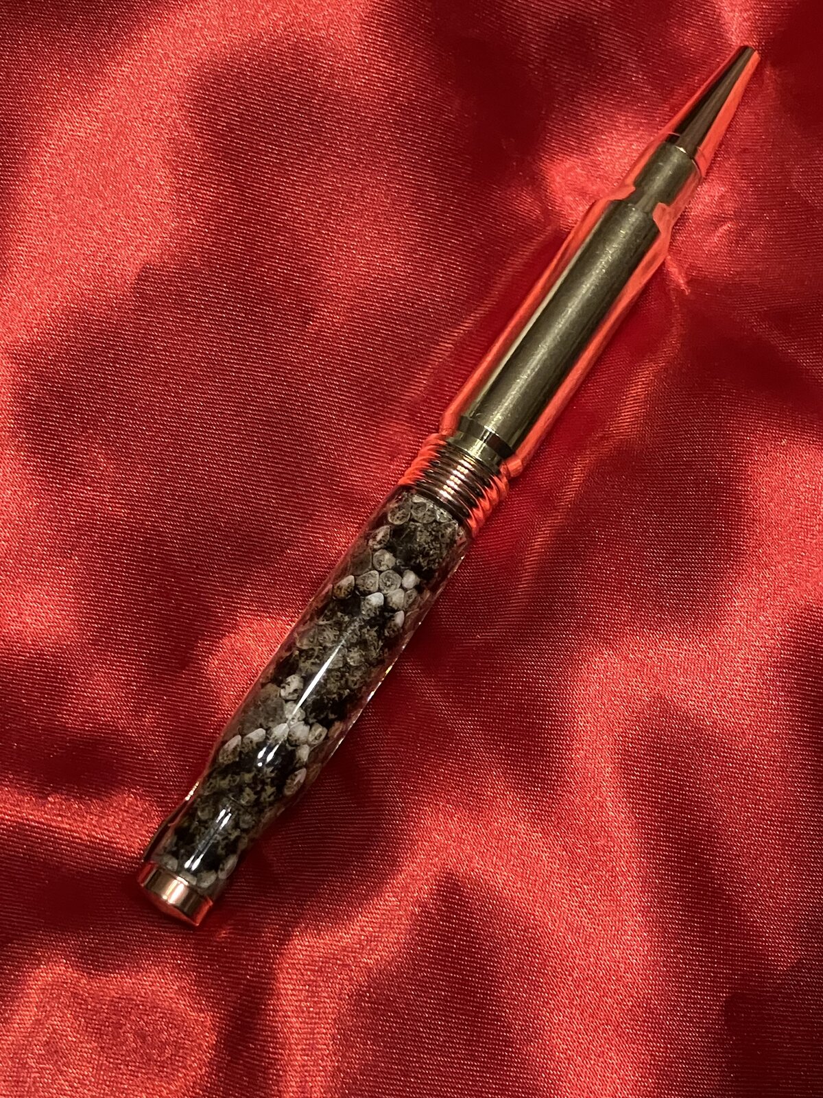 I've seen people make pens with the casing being the bottom half and the top out of wood or antler. I had a little time so I thought I'd try a snakeskin. I also wanted to shape the top like the casing. Not too bad for the first try. I thought about adding the rim as well but I didn't want it to chip with all the time in casting the blank. Maybe on the next one I'll turn a pice of walnut and try the rim. Questions and Comments Welcome. Thanks