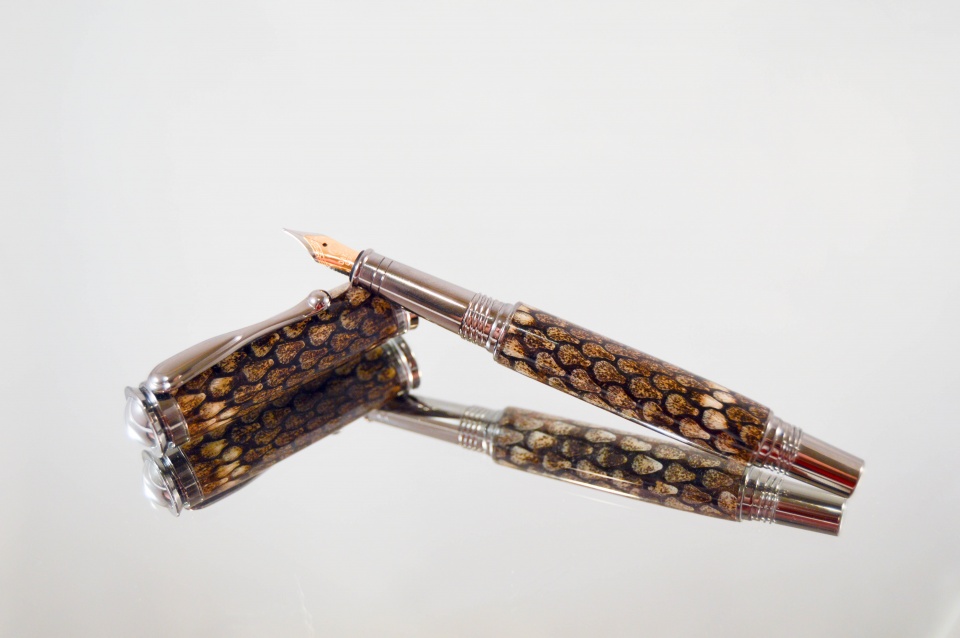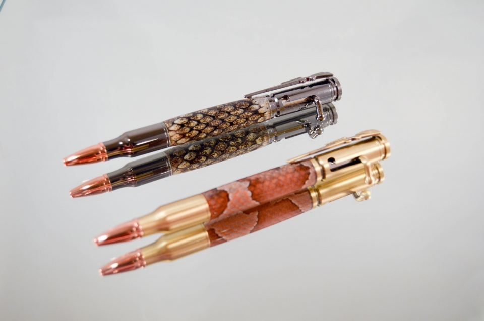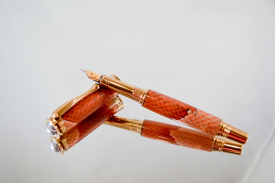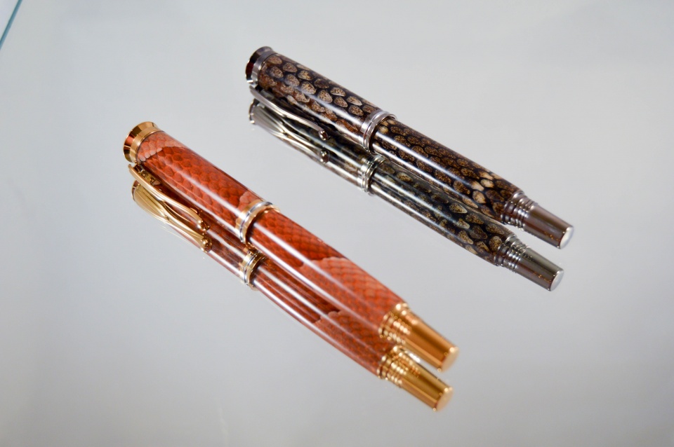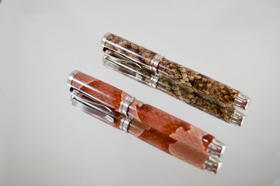 This is the snakeskin collection I posted on Facebook earlier. The blanks come from my friend, Seamus Rooney. In my opinion, this is the only way I like snakes, under reason and on a fountain pen. They are Copperhead and Prairie Rattler. Hope you enjoy.