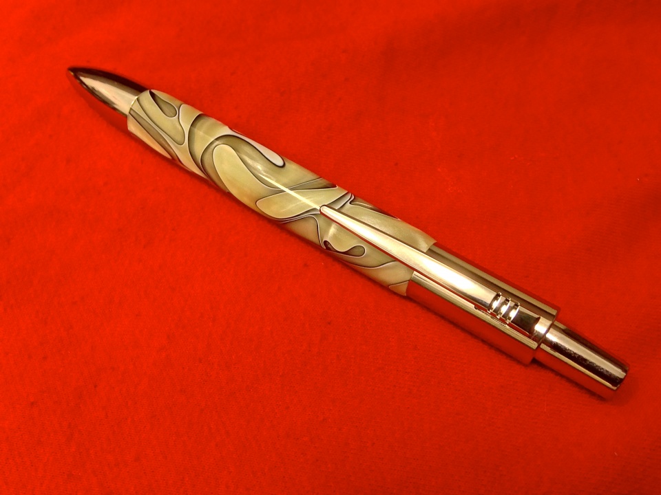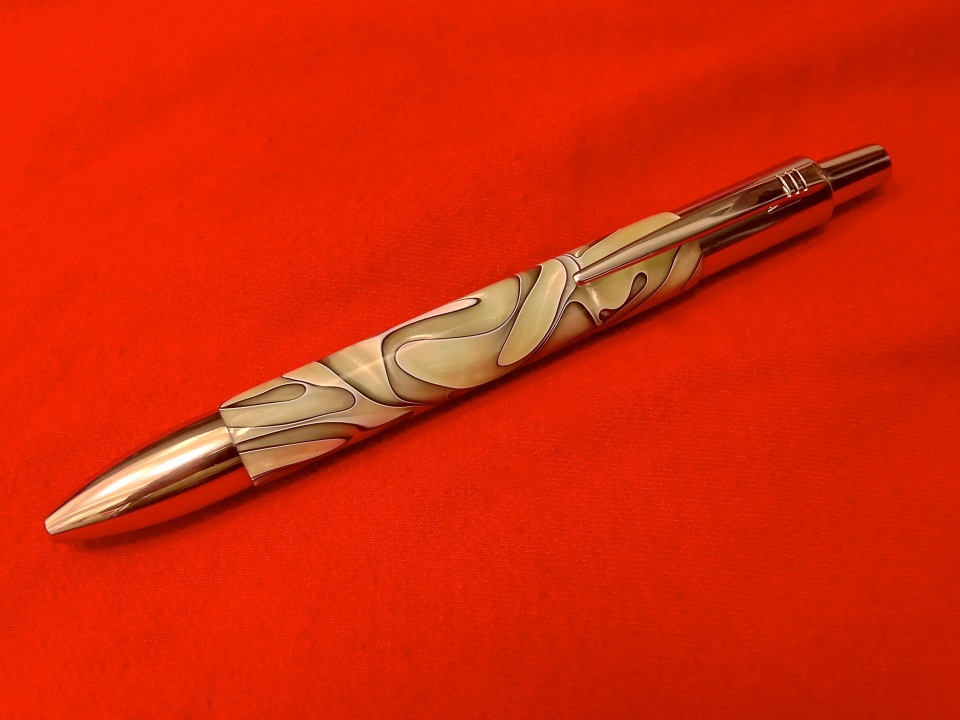 First off, the pen looks great and you just inspired me to look into getting some of those kits. One comment I have is the rolled shape on each end, it looks a little funny on that kit. I think the dead straight approach is the way to go here. Just an opinion, don't take it too hard. Your finish is great!