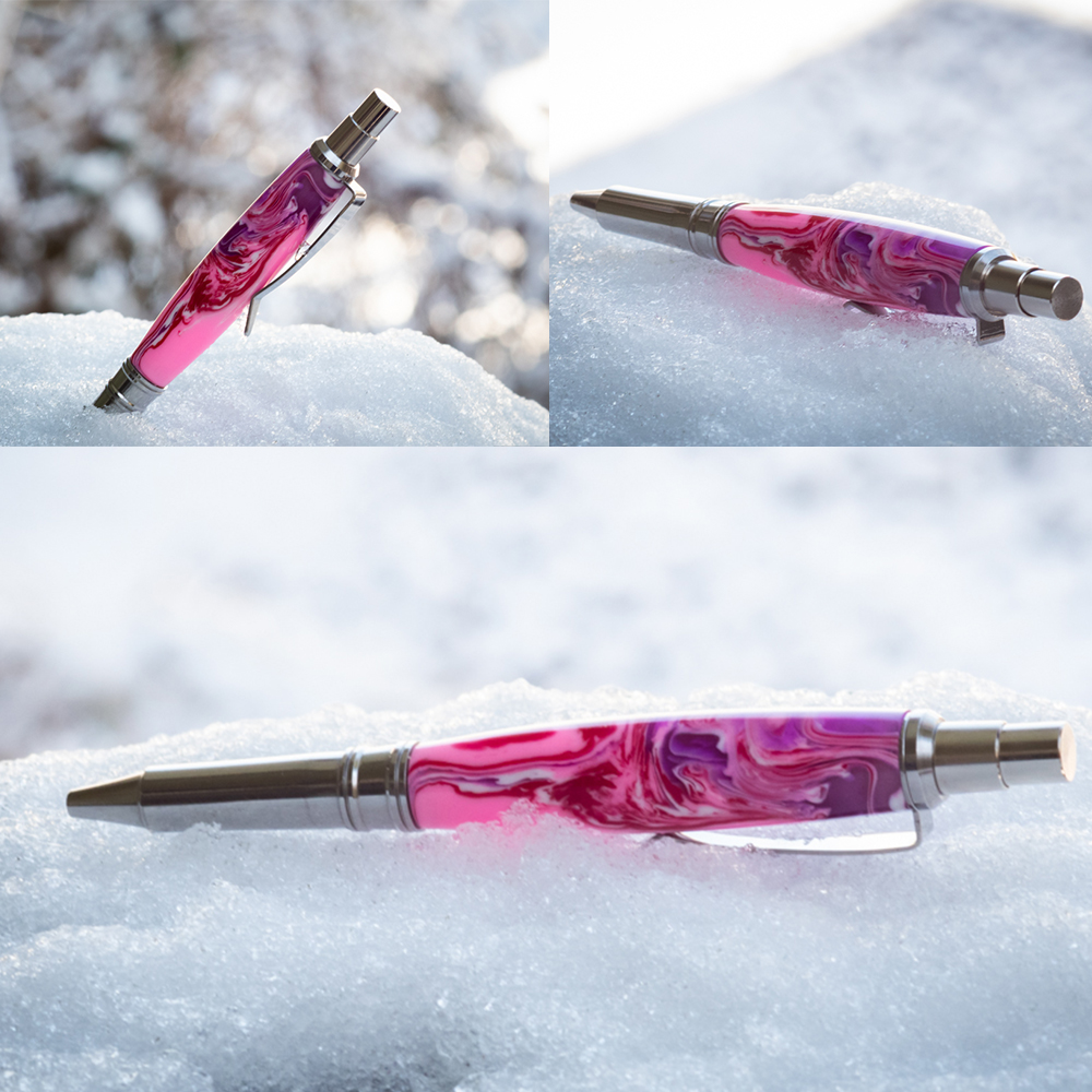 My wife is more of a click ballpoint pen person than a rollerball person, so I turned this for her for Valentine's day. McKenzie Coyote with the Schmidt click mechanism.