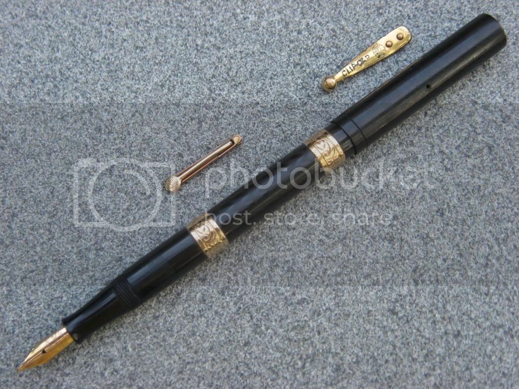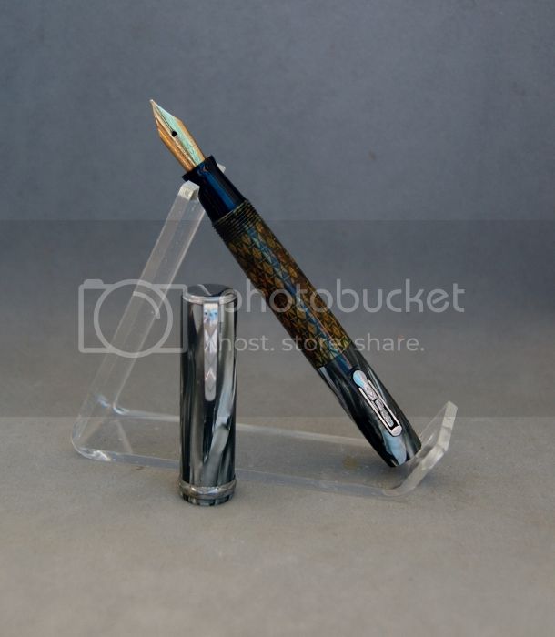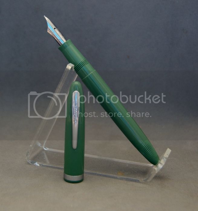 I think I'm developing a bit of a problem. I've been ebay hunting for vintage FPs. My latest acquisition is a nice Esterbrook desktop FB with base and long rear stem.