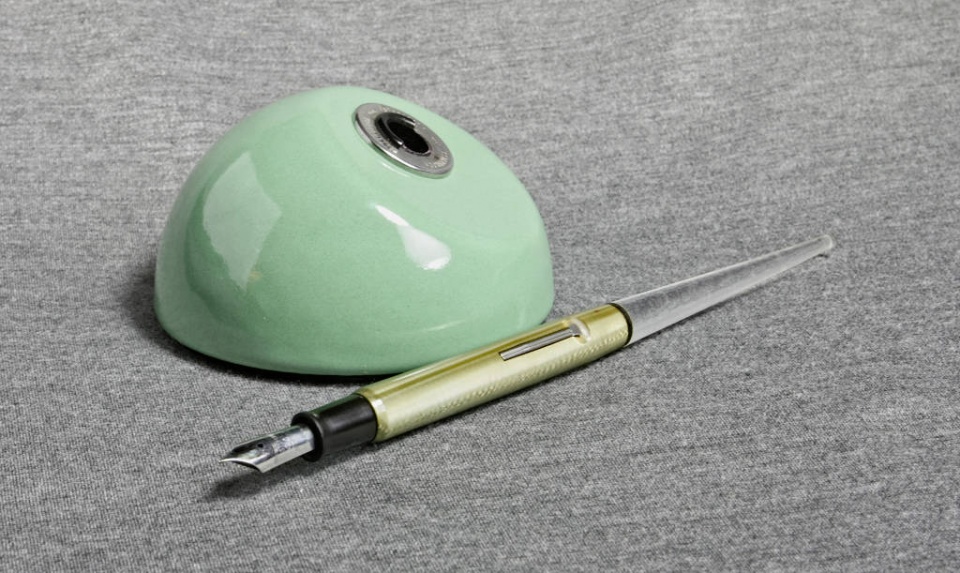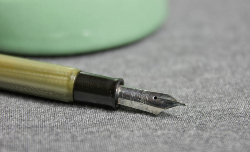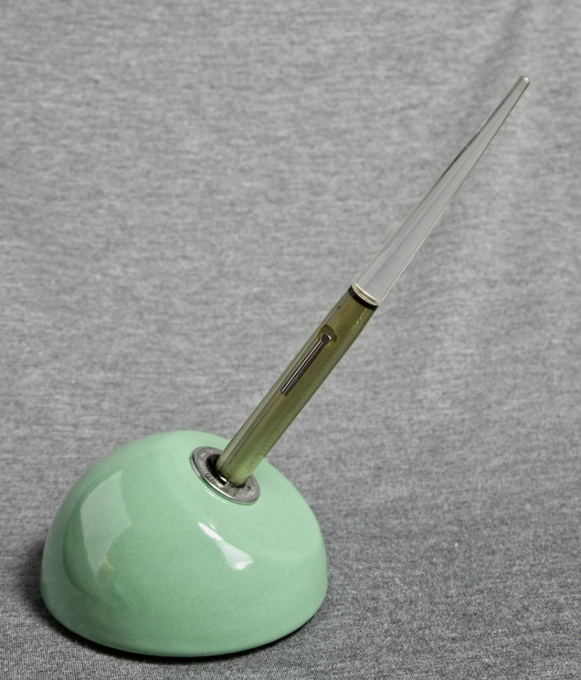 I think I'm developing a bit of a problem. I've been ebay hunting for vintage FPs. My latest acquisition is a nice Esterbrook desktop FB with base and long rear stem.
