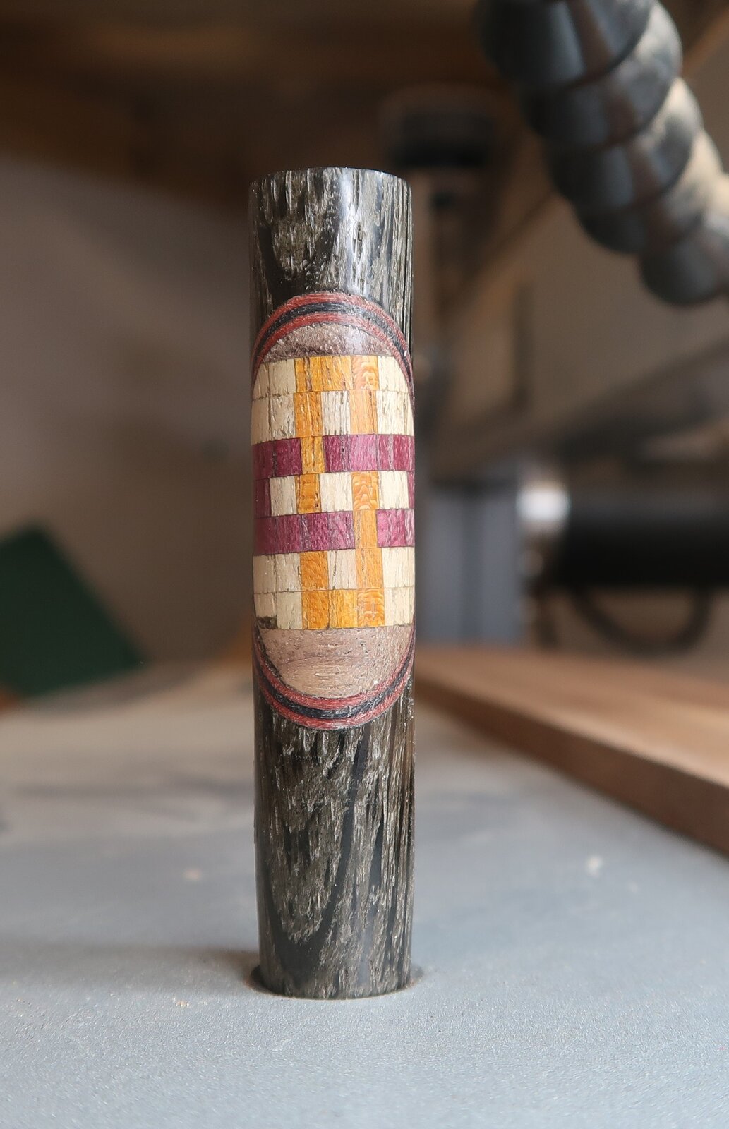 Thanks, Mark...and now I understand the direction that Steve @SteveJ was coming from.SteveJ and Alan, you are combining two different processes. I may not have the time shortly to make sense, but: Steve can construct these patterns with multiple segmented blanks, cut into slices. With 4-5-6-7-8 different combinations, he can assemble the inner window of what Alan is constructing. Now, getting that 'blank' (slice upon slice upon slice) into a window sized insert is a very different challenge. Both are hard, both take repeated failures, both need to fit together. In my opinion, one of the most difficult segmenting challenges I attempted - a LOT of FUN!!!