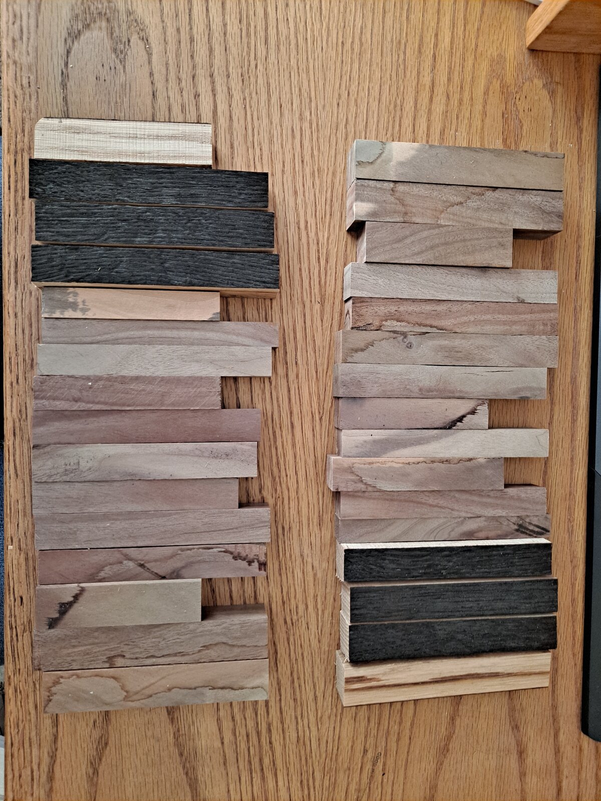 I also have leftover barrel stave white oak blanks from Dry Fly Distillery in Spokane, WA. Roughly 7/8x1" and 5", except the one shorty at 3.75"