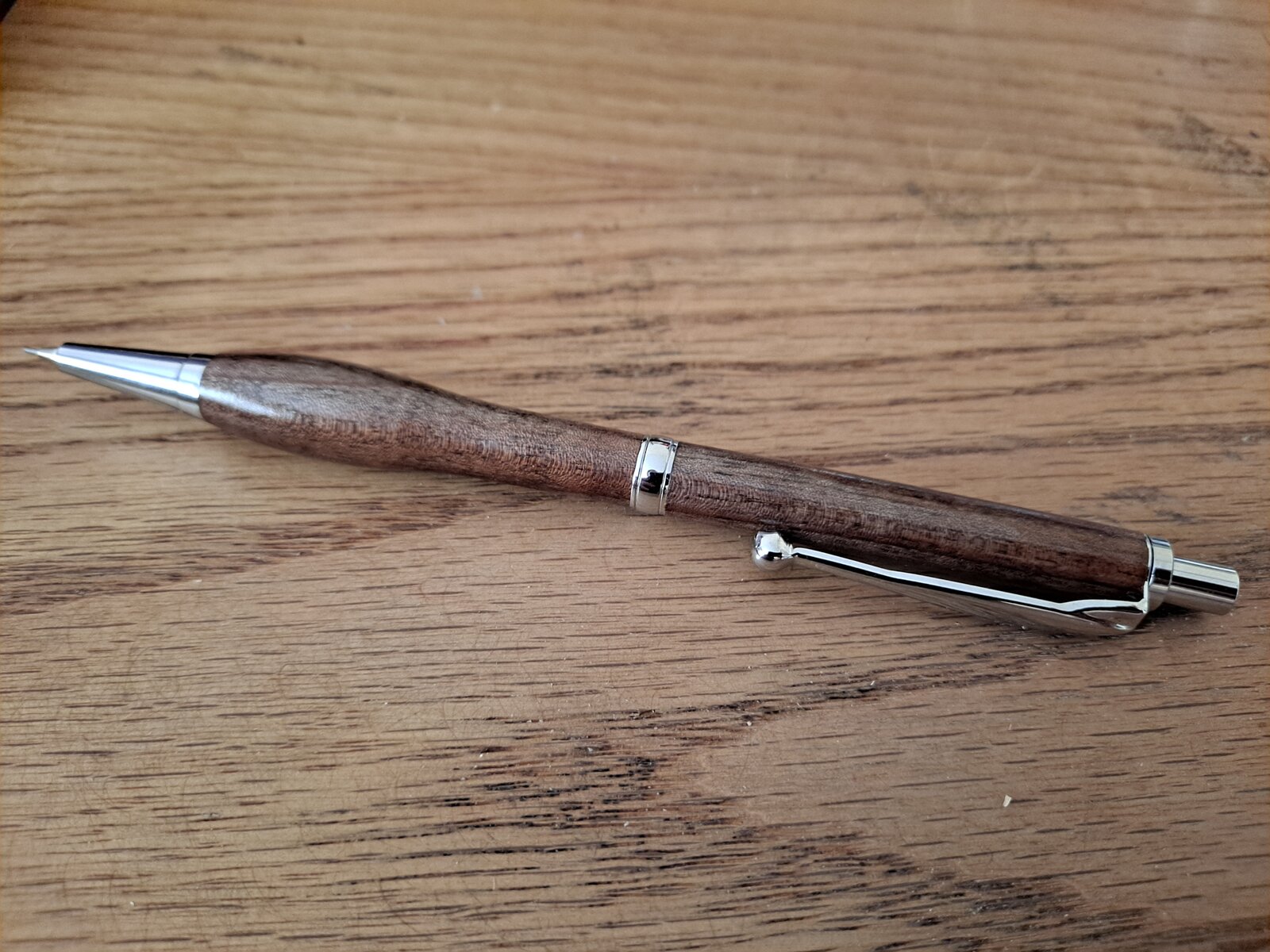 A quick slimline shop (read as "I didn't care about finish quality") pencil to show color of the walnut.