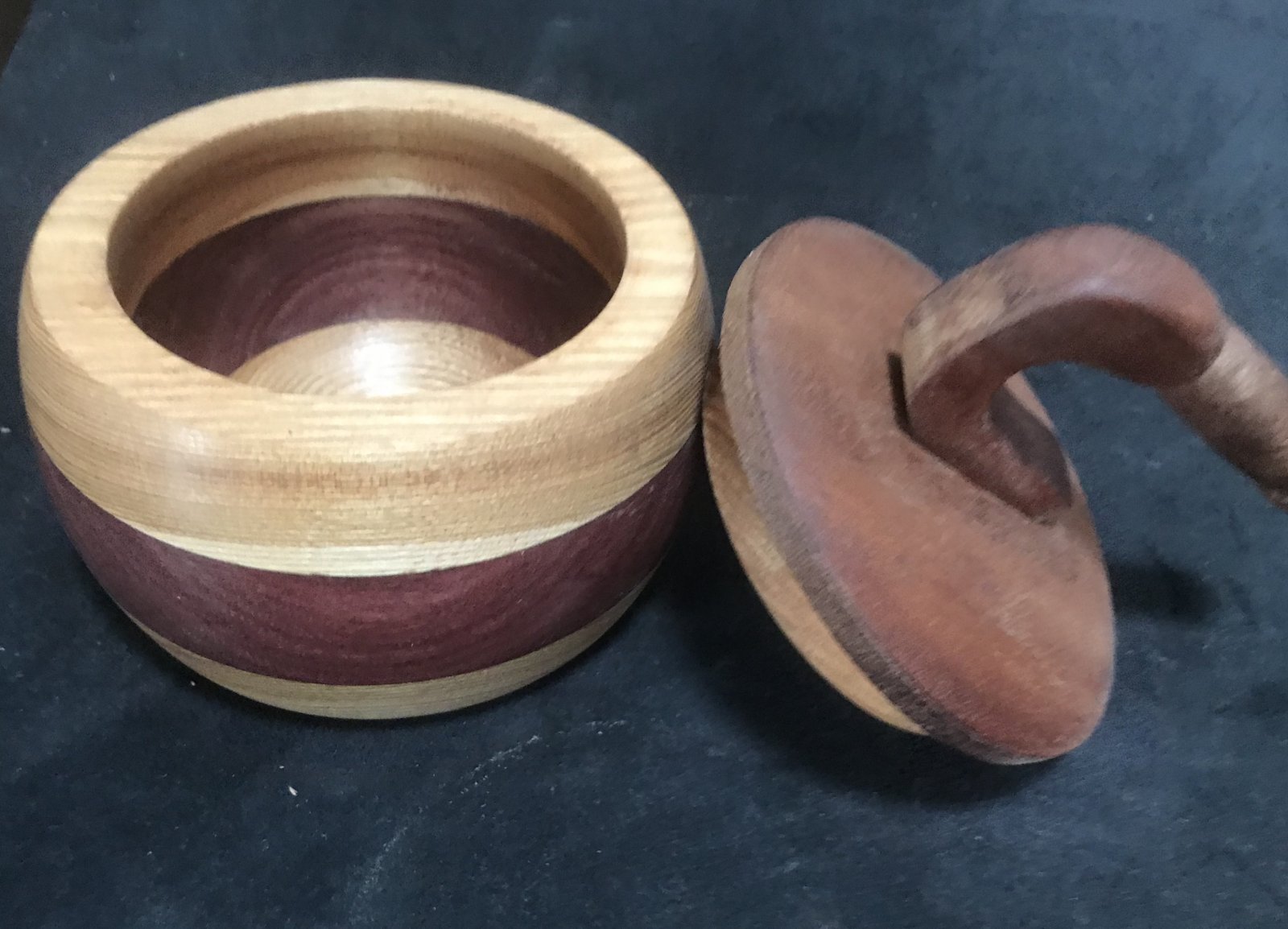 Since most of my outlets for selling pens are shut down right now (shows, galleries), I've tried some other turnings. The two bunnies were from a piece of spalted maple I was going to make into a pepper mill, but the day before Easter I got inspired. The small lidded bowl is my interpretation of a curling stone, and the small bowls are all resin castings, two with miniature pine (fir) cones and one with wood chips. I've got a few more resin castings that have just come out of the pot and am anxious to turn.