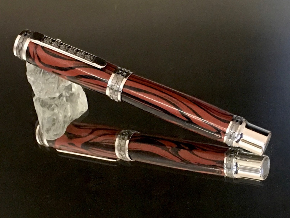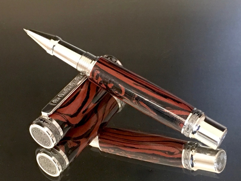 I completed two commissions this weekend. The first is a black & red lava mokume bland mated with an Emperor rollerball kit.