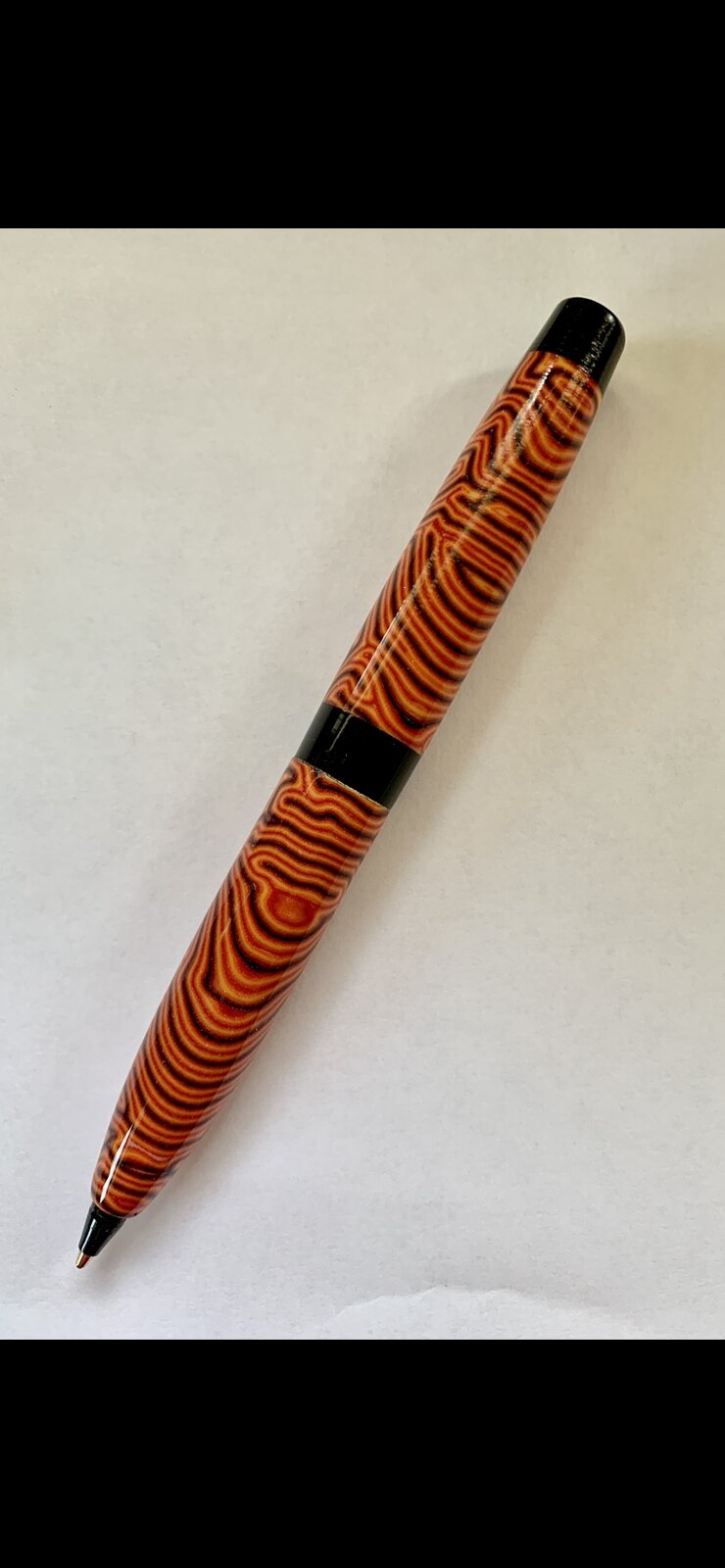 The third is a pen I made from micarta and black resin to take a bic refill. My wife wanted a pen like this after seeing a pen Dick Sing Made in a demo. The micarta blew up on me while turning so I glued in some black resin to make it long enough to hold the Bic ink stick.