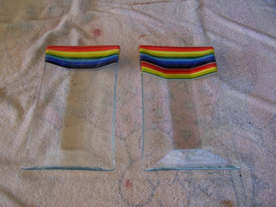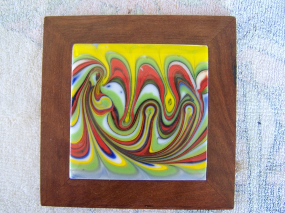 These are a few of some recent glass pieces that I've made. Two trivets have wooden frames so far. One is made from Hairy Oak, (an Aussie She-oak or casuarina) and the other is Queensland maple.