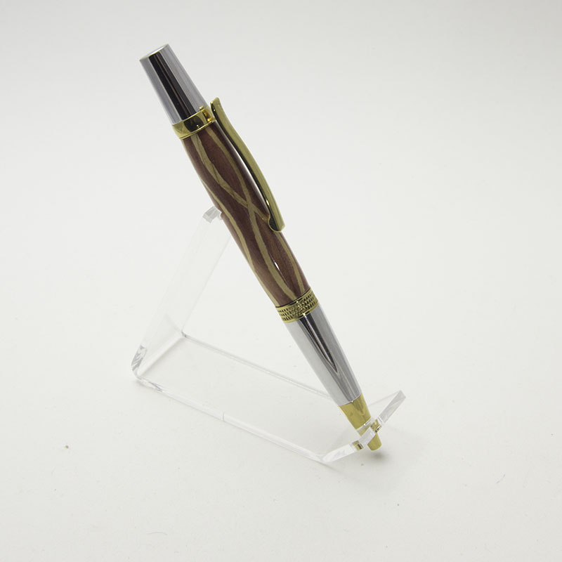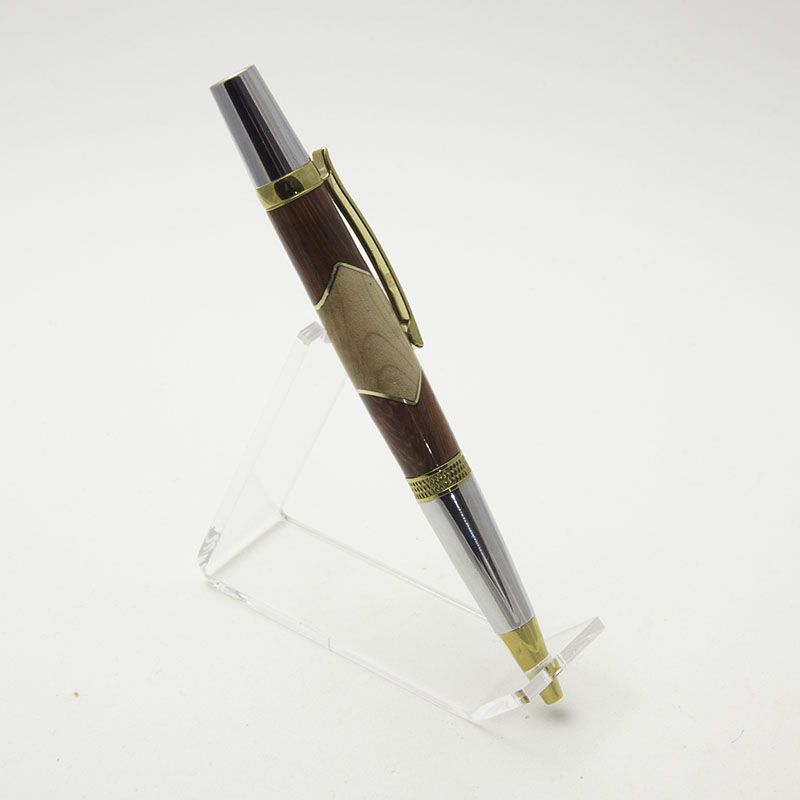 Pen #1 is bloodwood, maple and brass on a chrome & titanium gold Diamond Knurl ballpoint.