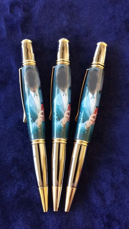 A few weeks ago on Palm Sunday my neighbors lost their 26 year old son in a tragic accident. What do you say? What do you do? Nothing you or I say or do can ever relieve that pain. After attending the memorial service, I had the idea to make my neighbors and their other son each a pen with a photo of their son/brother on it. I was not sure how the pens would be received. Would they be a good thing or reminder the family didn't need. I decided to go for it and contacted Jason Rose to make the blanks for me. Jason did an outstanding job on the blanks and got them to me within a couple of days. I turned the blanks and mounted them on Gold and Gunmetal Gatsby kits. A few days later my wife and I presented the pens which were lets say ... emotionally received in a good way. This evening I spoke with my neighbor and he told me how special the pens were to him and his family. I don't think anything can take away the pain of loosing a child, but if a pen can bring a little joy back to a broken heart .... I'm happy to do my part to make that happen.