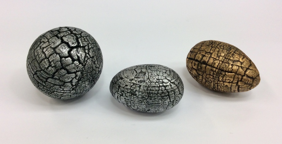 Yes, torched to "alligator skin" texture. These were maple and cherry....the smaller egg is pine as you might gather from the grain. It is interesting to see the different appearance between end grain, face grain and edge grain. If the piece should have a crack or void, it becomes a feature.