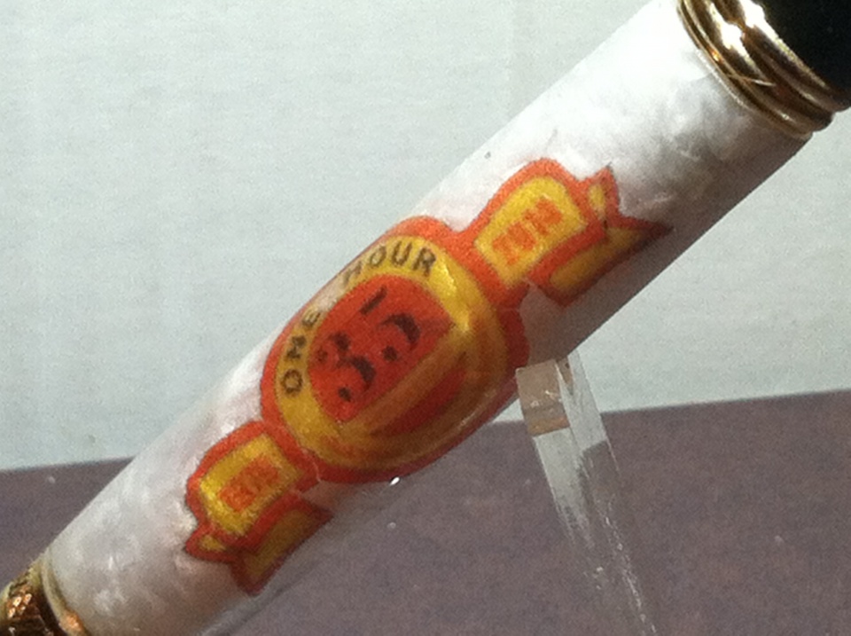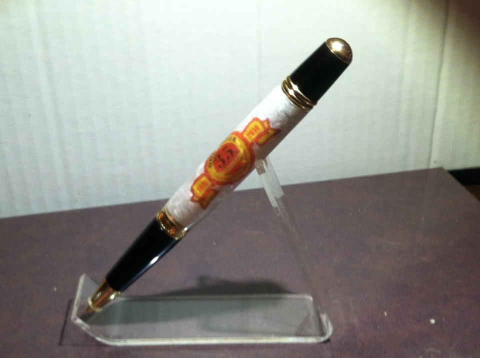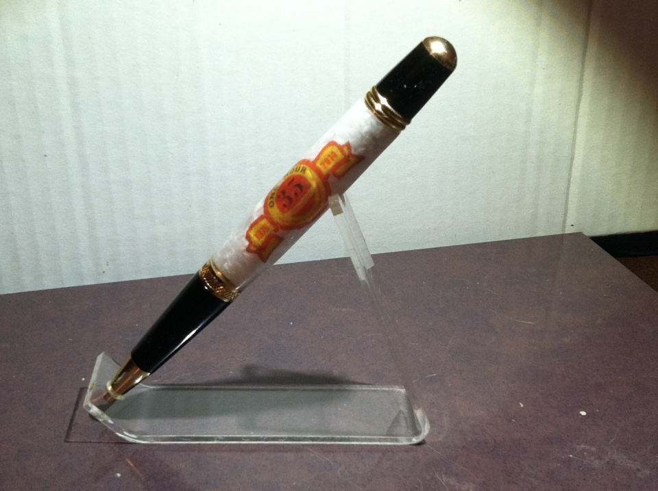 Thanks to Brucee119 for help with the decal. My boss's birthday is in a couple days and the company just celebrated 35 yrs. I am not brown nosing (as people have said on facebook).. I had mentioned pen turning during the interview and he was curious..
