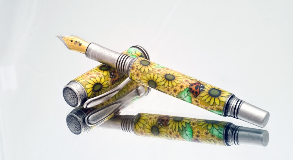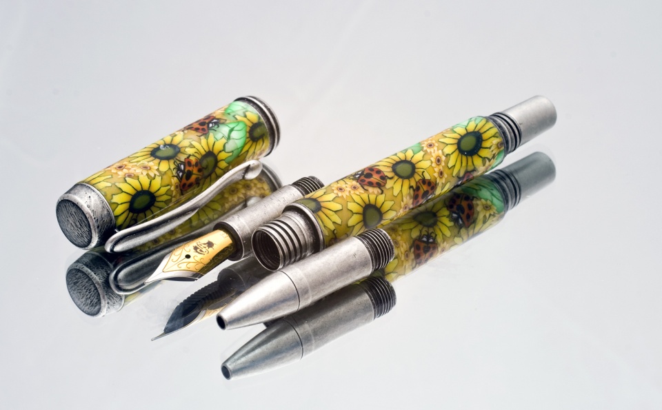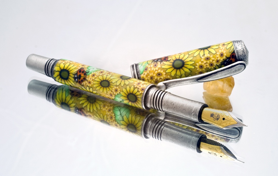 We wanted to share a new pen with everyone on SOYP as it's a new kit new design and new concept from Toni Ransfield that I thought would go over super good. Design was based on the #6 Jowo nib in EF to the polymer clay sunflowers then from the pattern to the antique silver plating.