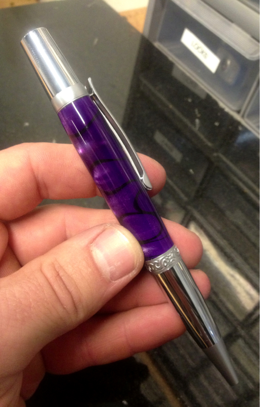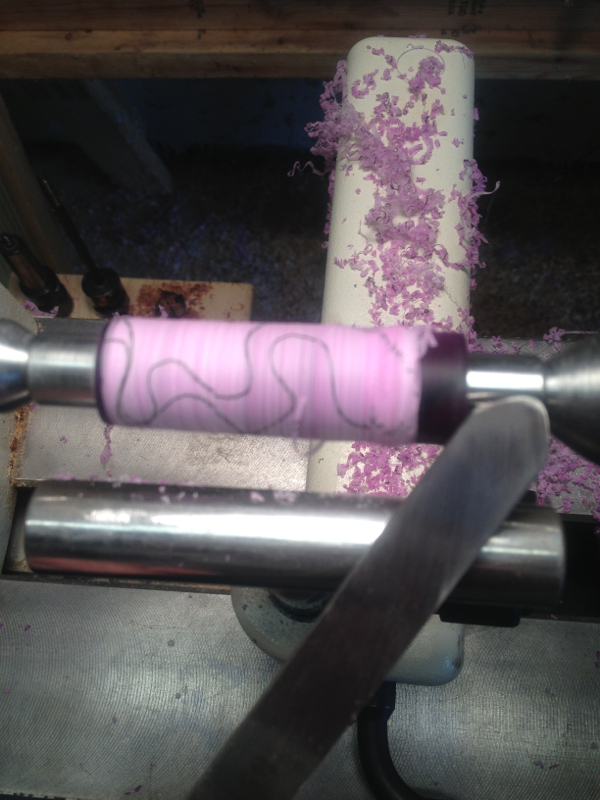 I was turning this purple acrylic blank today and I thought I'd try out a couple different tools to see how they work with acrylics.