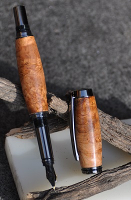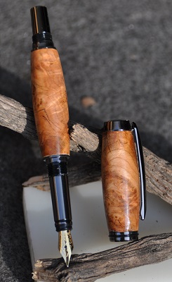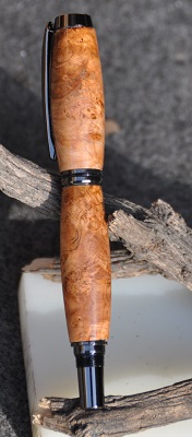 Last weekend my 23 year old son decided dad was having too much fun, and even though he was using machinery and sharp object, turned 3 nice pens. I am still trying to talk him into posting his first in the Beginners Contest, so here is his 3rd. It is a Caballero in Gun Metal wrapped in Black Cherry Burl.