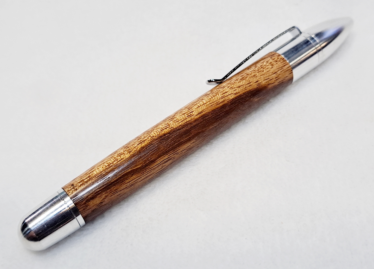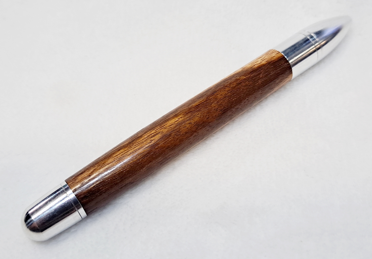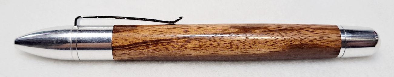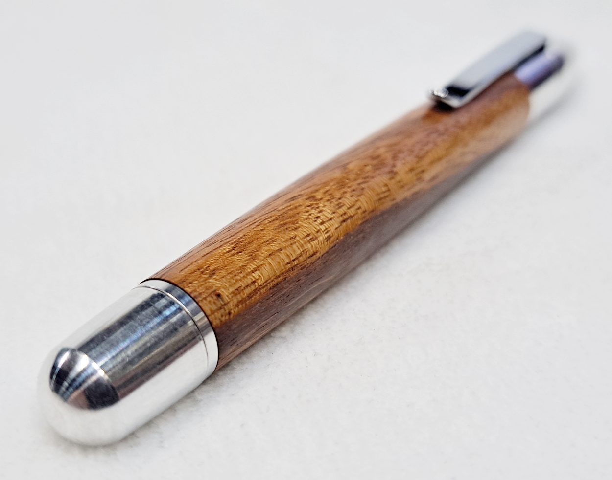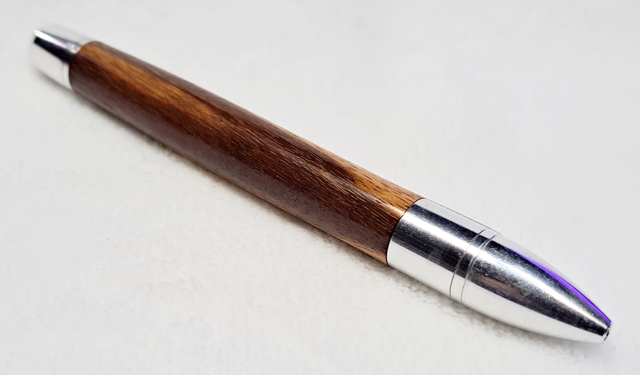This is a PSI Sophro Capless rollerball pen, in aluminum. The blank is goncalo alves from Exotic Blanks. The finish is Pens Plus and carnuba wax.