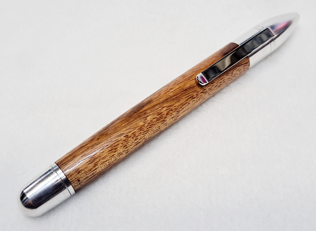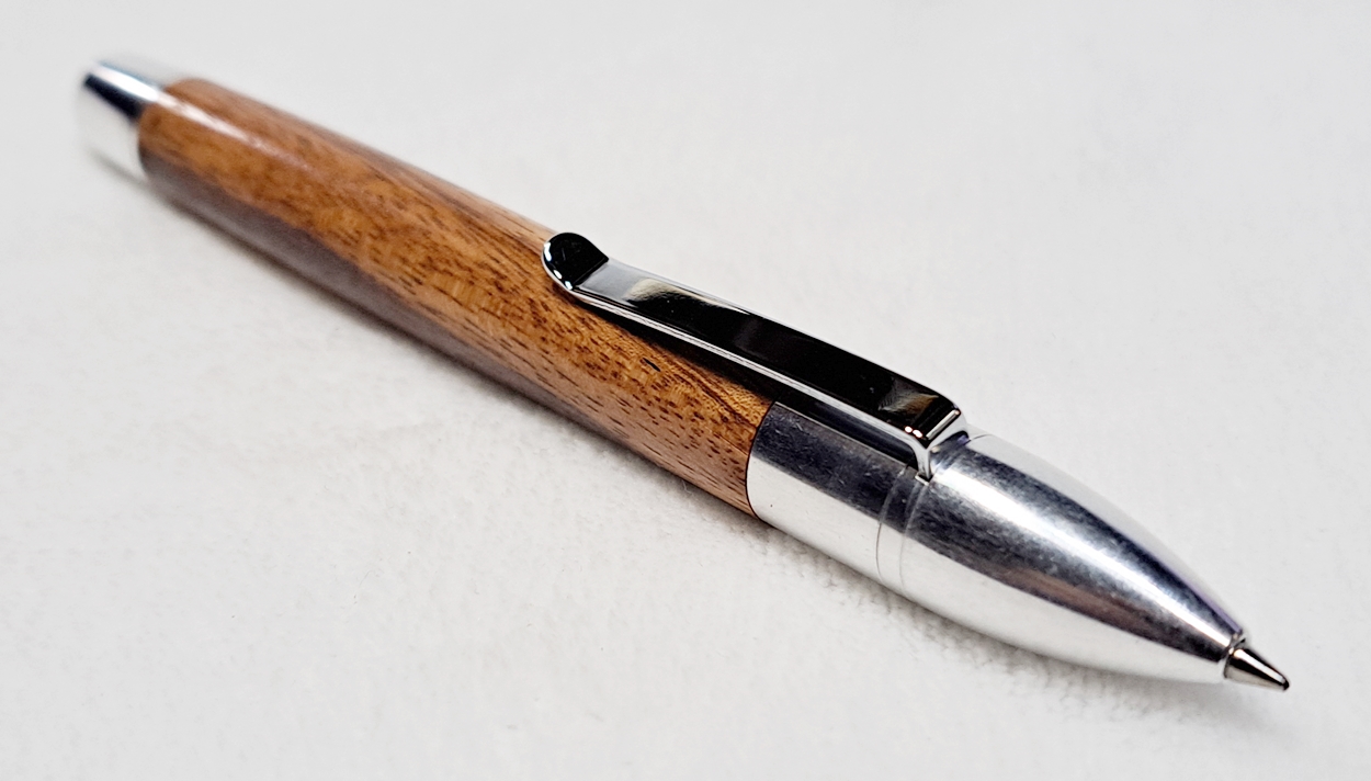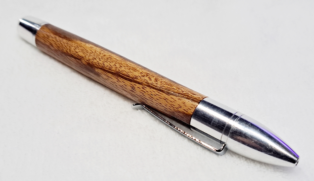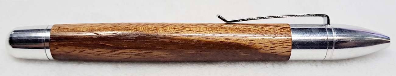 This is a PSI Sophro Capless rollerball pen, in aluminum. The blank is goncalo alves from Exotic Blanks. The finish is Pens Plus and carnuba wax.