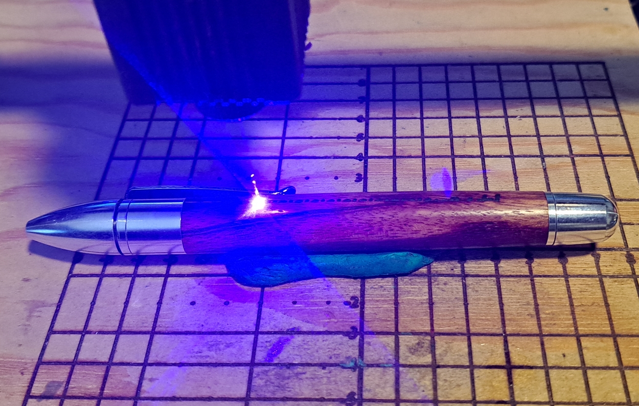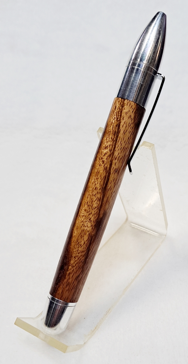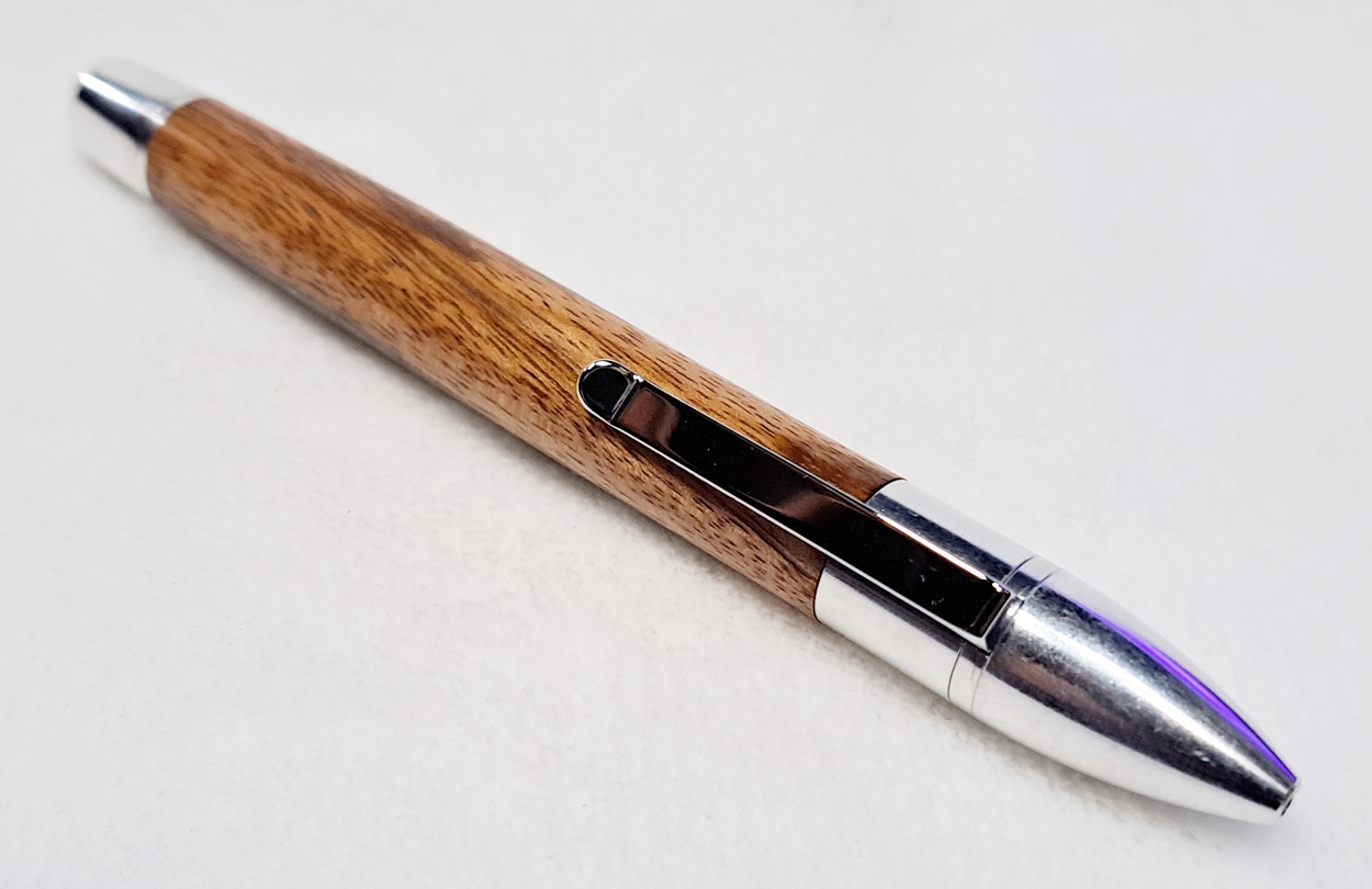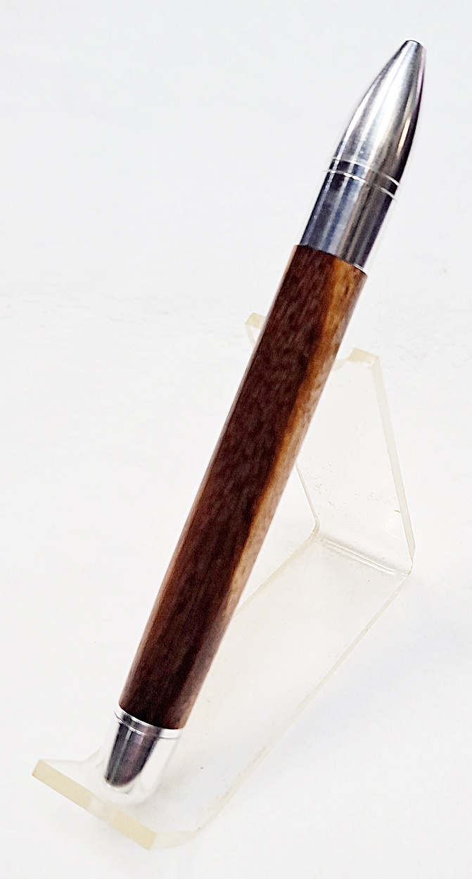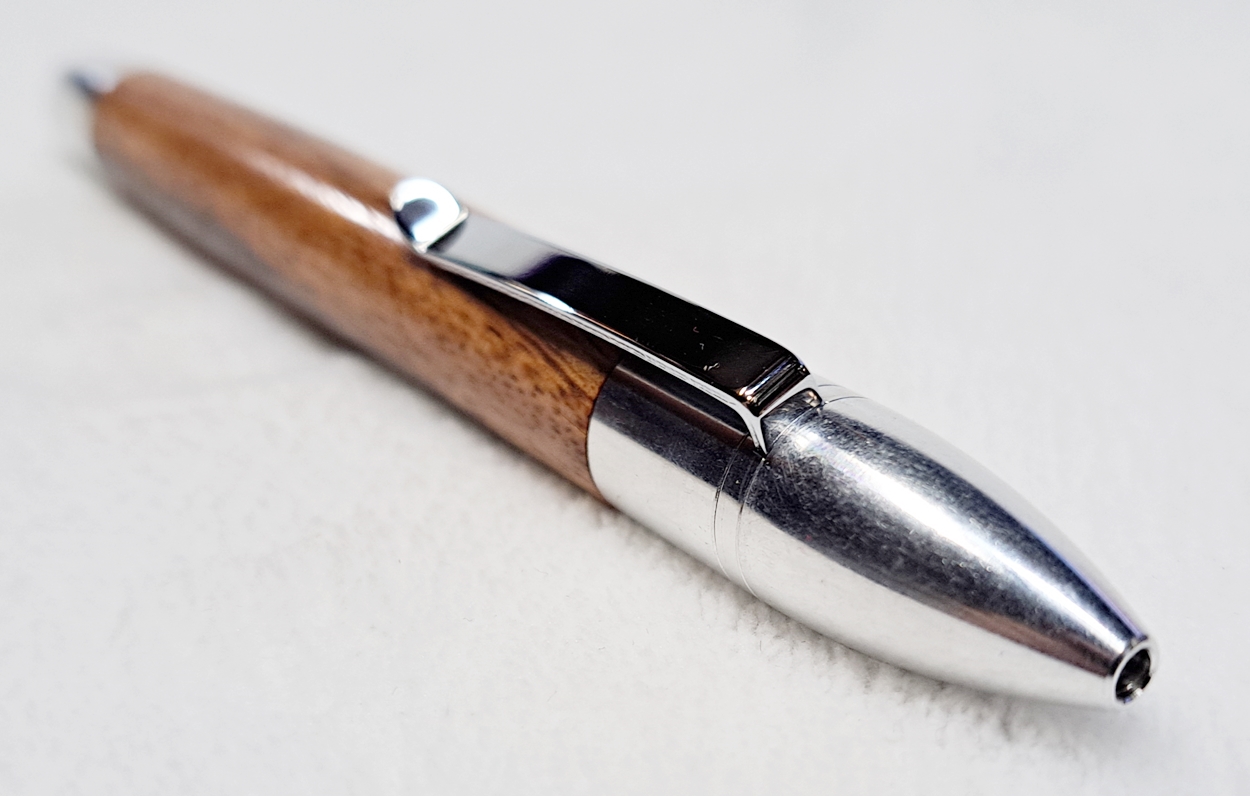 This is a PSI Sophro Capless rollerball pen, in aluminum. The blank is goncalo alves from Exotic Blanks. The finish is Pens Plus and carnuba wax.