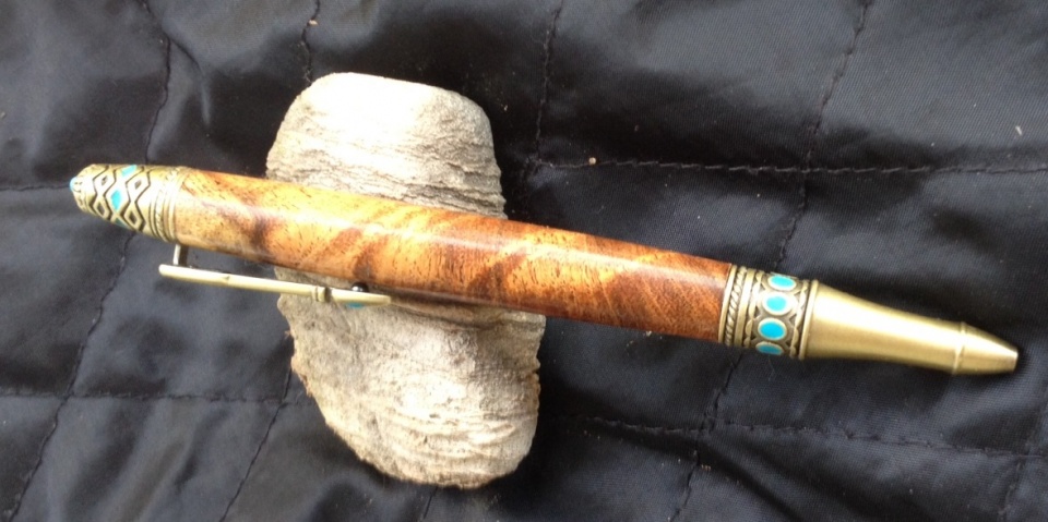 I saw these kits and though they would sell well here in Arizona. I purchased the starter 3 pack with the bushings good deal IMHO. Here are two I turned today, the first one is splatted Texas pecan from Edgar and the 2nd is mesquite burl I had kicking around. Both are finished with BLO/CA then buffed with white diamond.