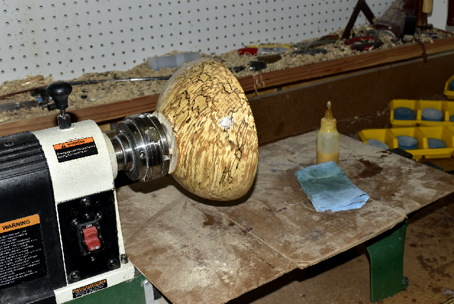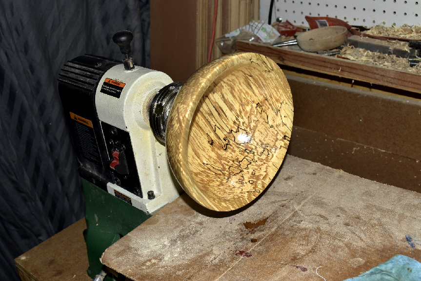I just keep checking the roughed-out bowls and if they are ready to be twice turned... I hit them up. I only have two more spalted bowls to rough out. I lost four of them due to cracking up too much.