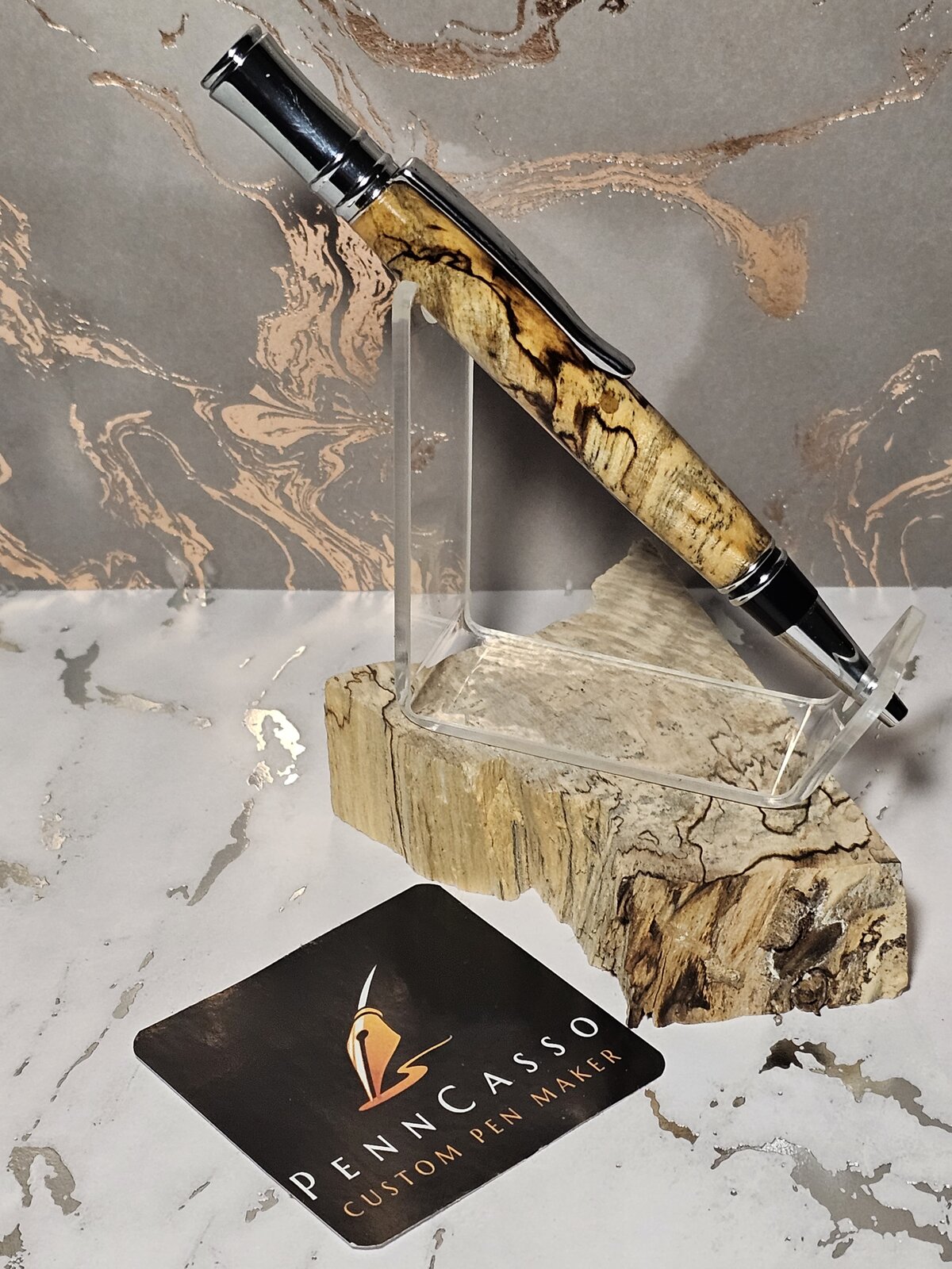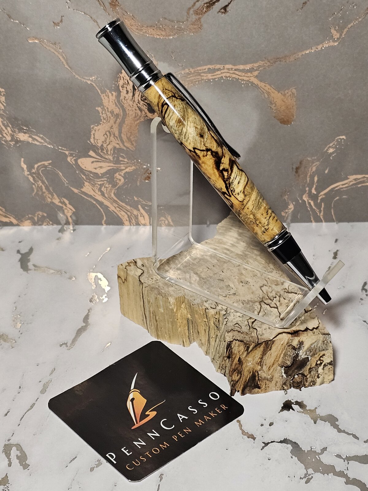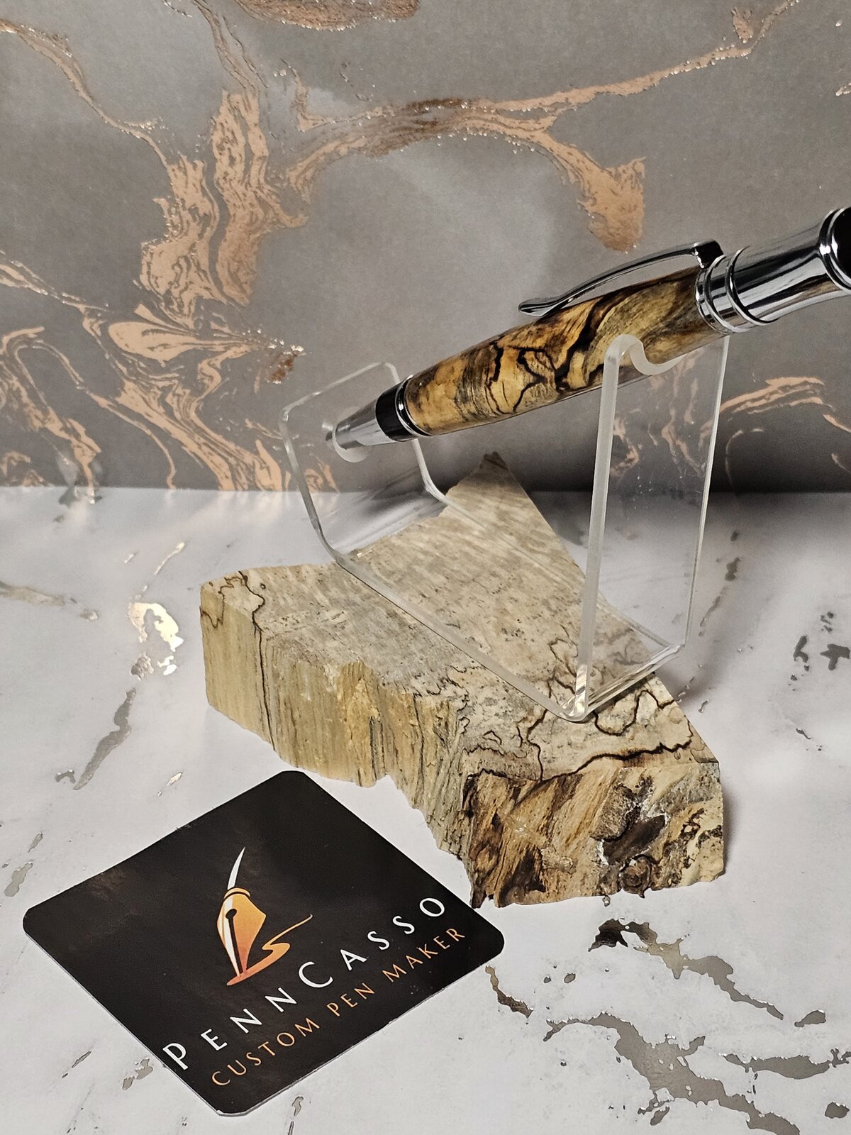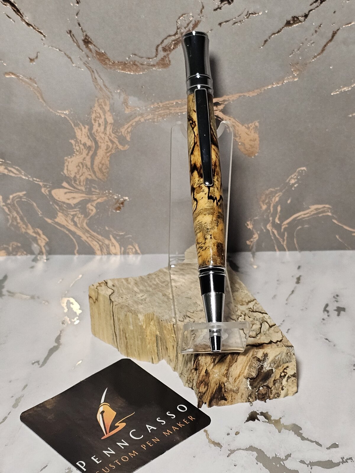 The wood that the pen is sitting on, it's what I made this pen from.